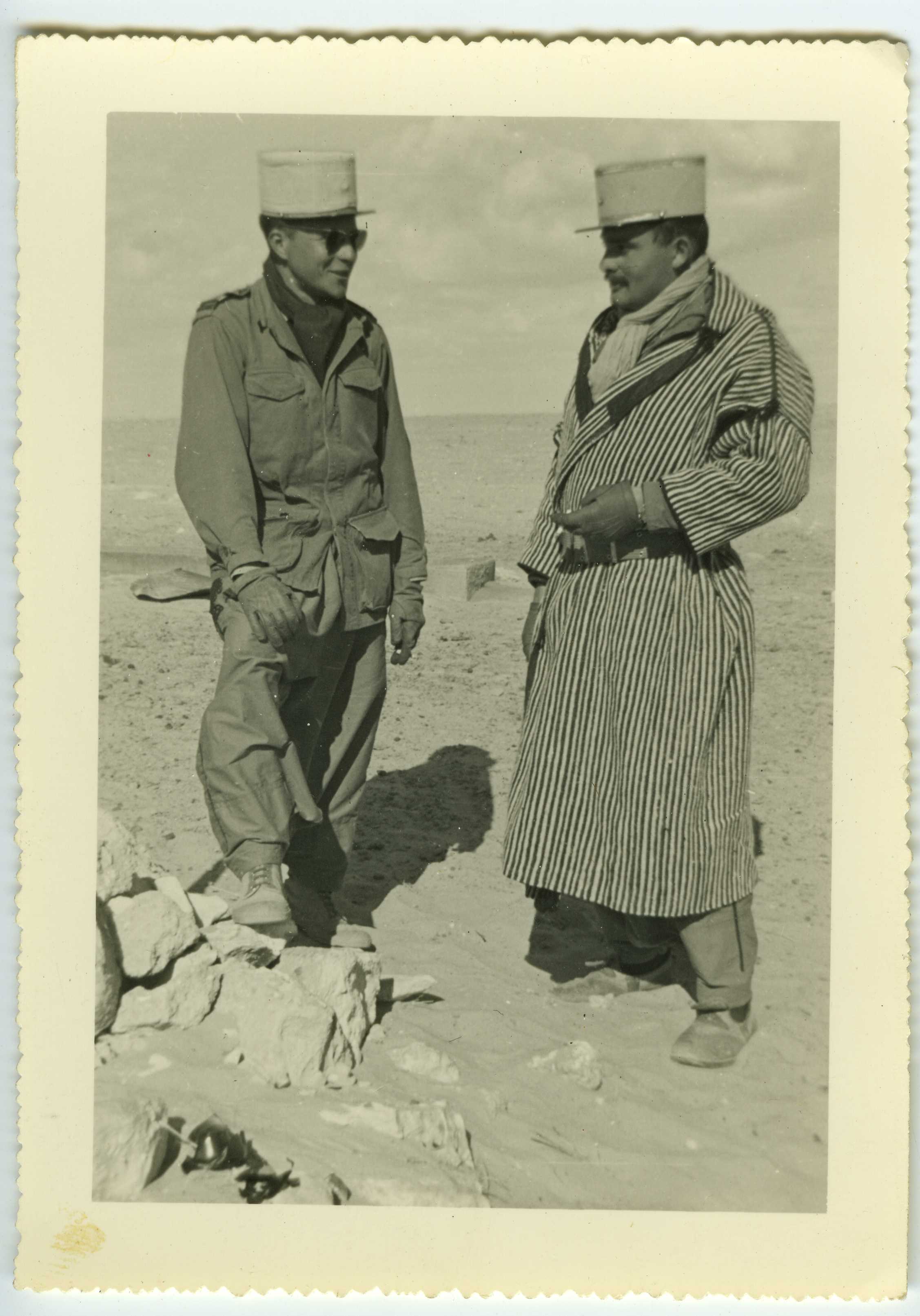 Deux légionnaires français dans le désert. Sans doute en Afrique du Nord.