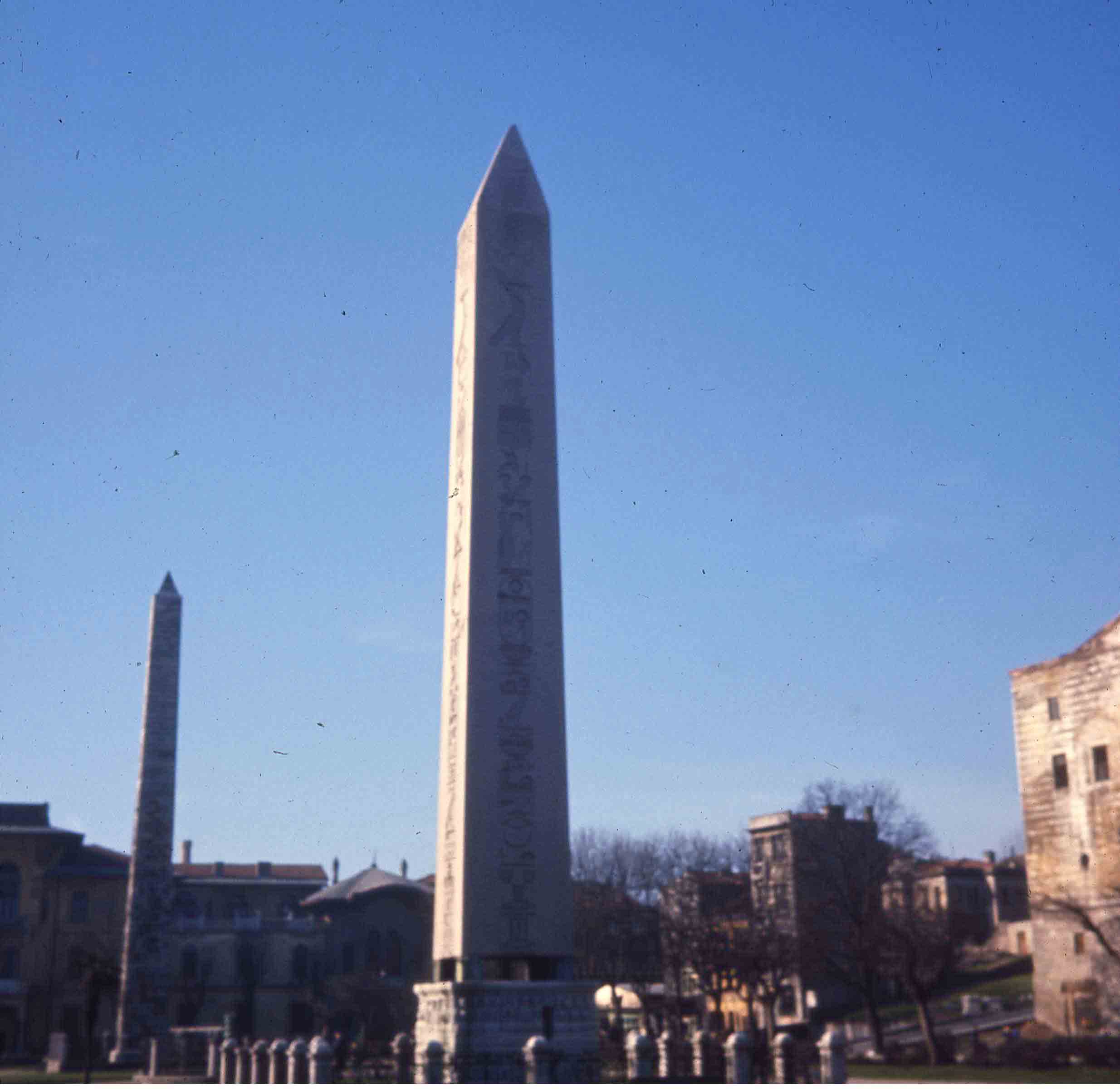 Deux obélisques de la Mosquée Bleue d'Istanbul dans les années 1950