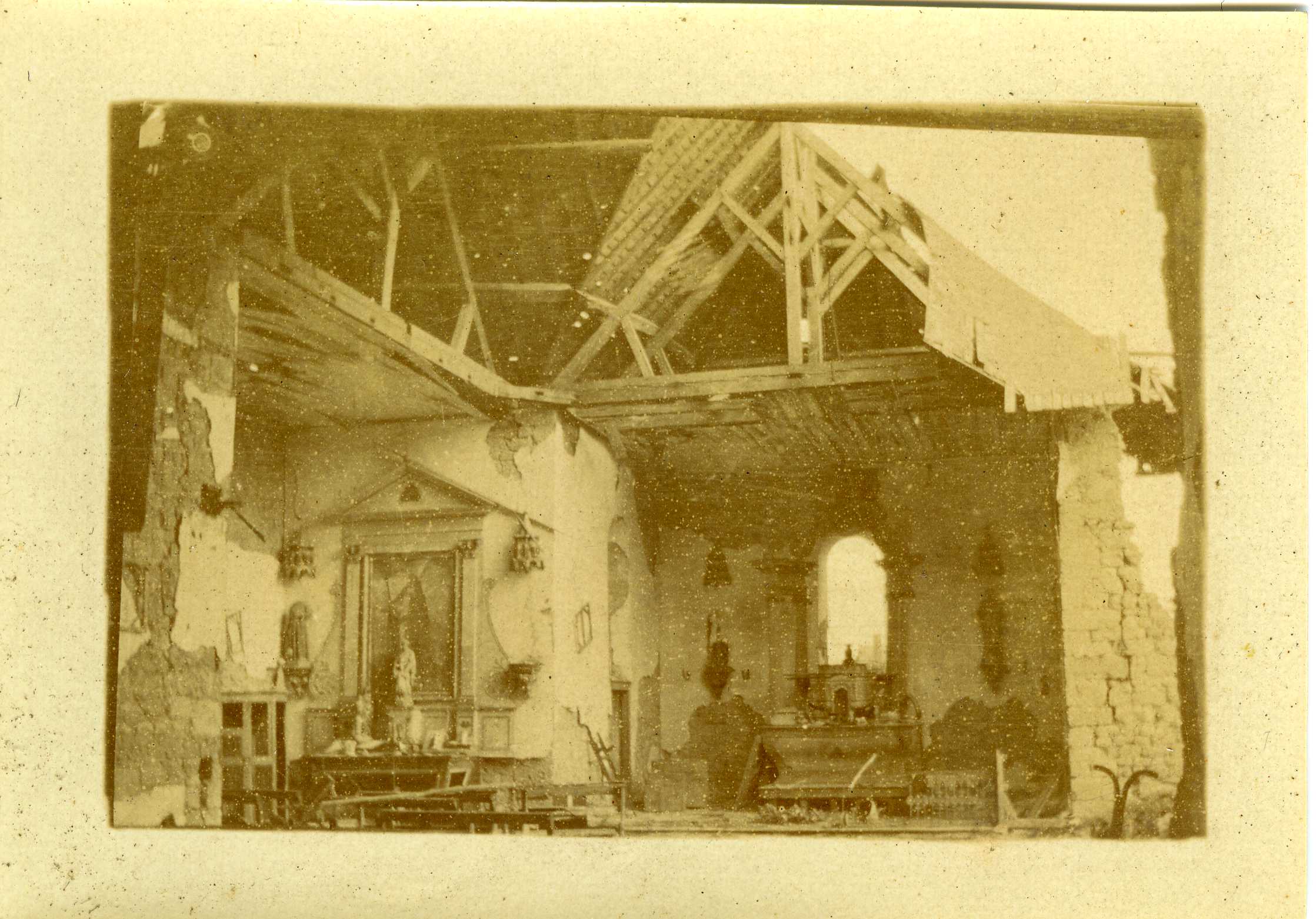 Eglise en ruine après un bombardement pendant la Première Guerre mondiale