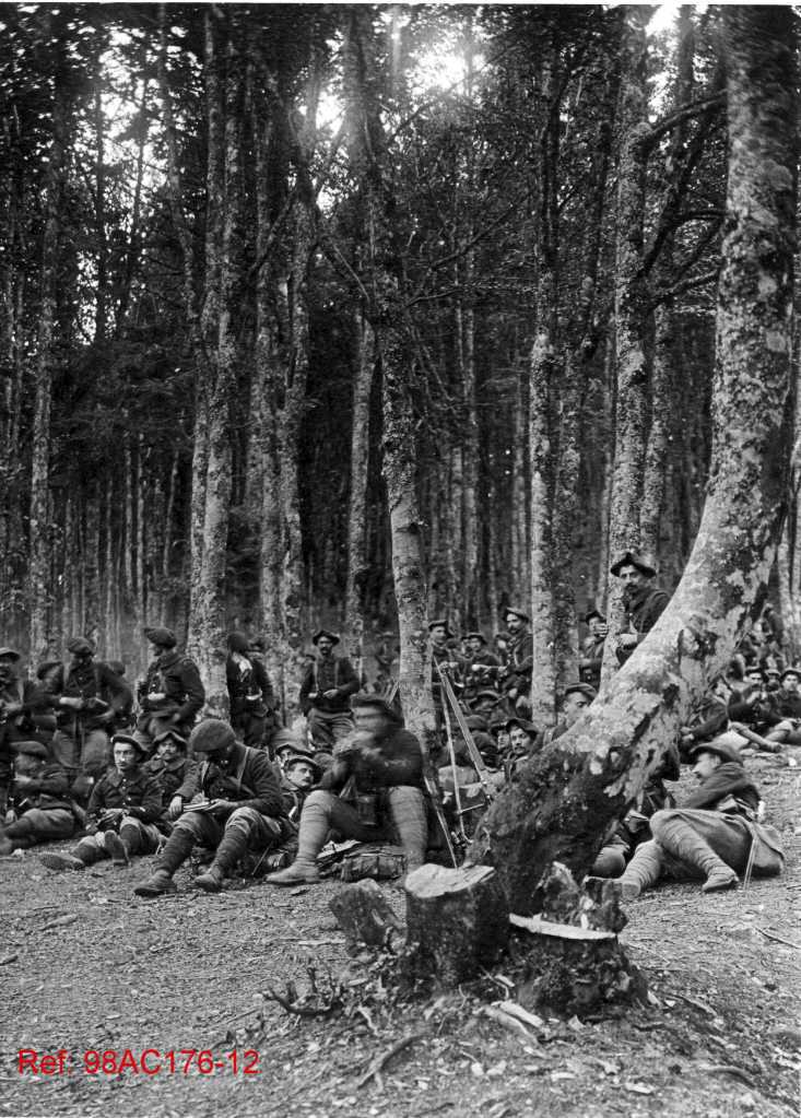 Fantassins français de la Première Guerre mondiale au repos dans les bois