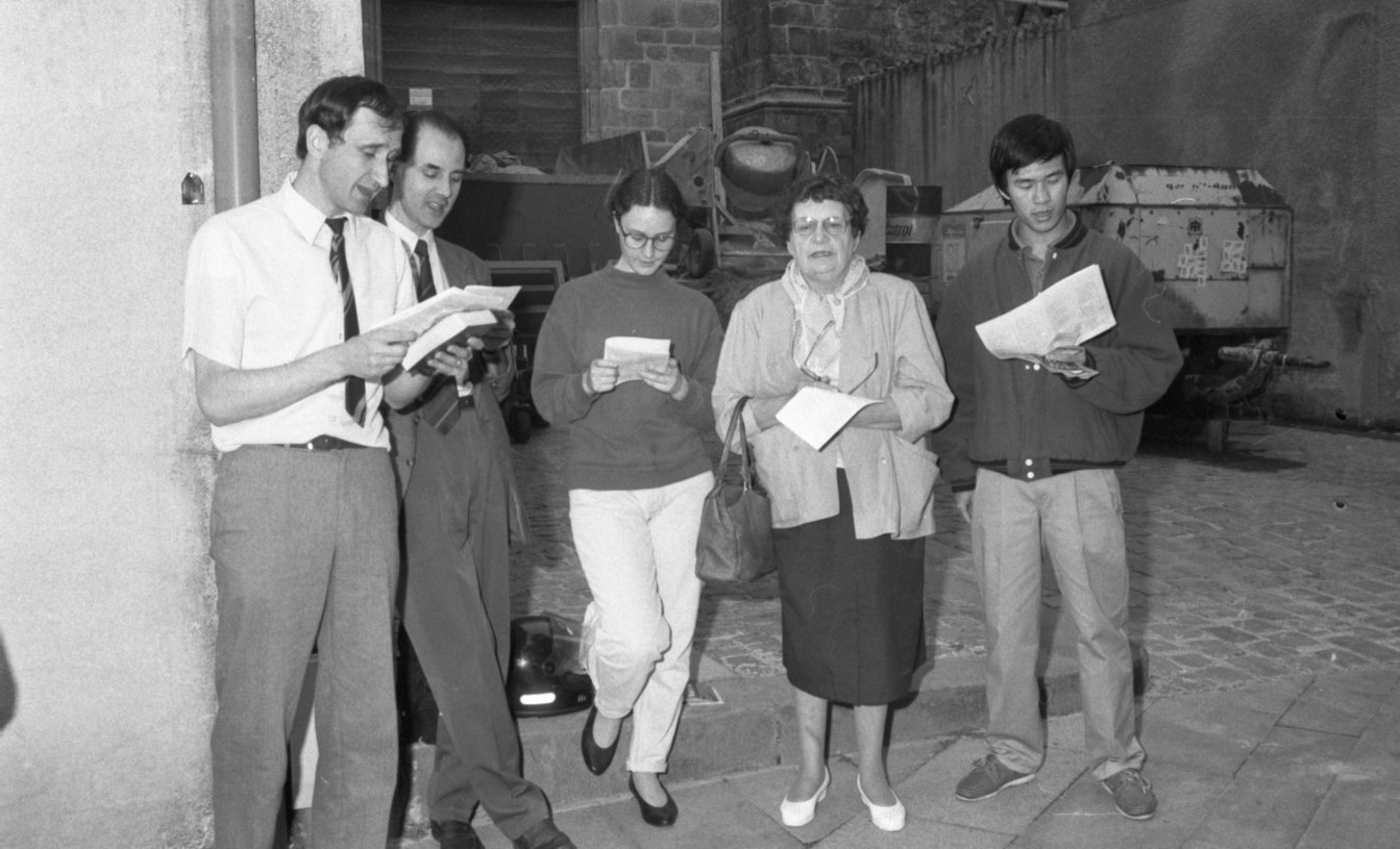 Des membres d'une chorale chantent lors de la fête de la Musique, à Limoges, en juin 1991.