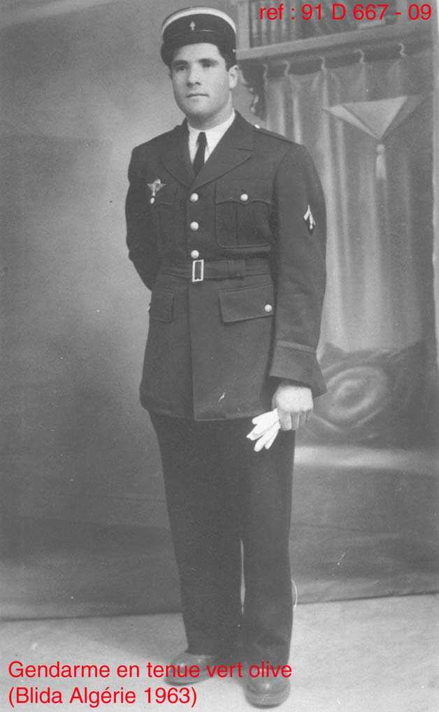 Gendarme en tenue vert olive en 1963 à Blida en Algérie