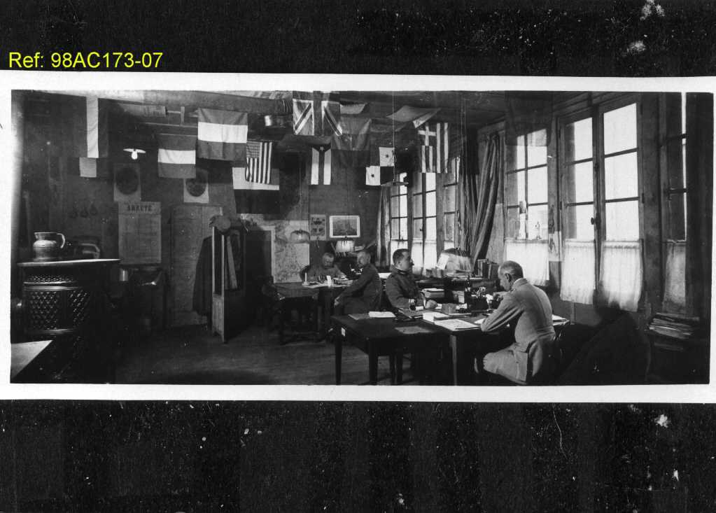 Gendarmerie en Alsace Lorraine après 1918. La gendarmerie est ornée de drapeaux de différents pays.
