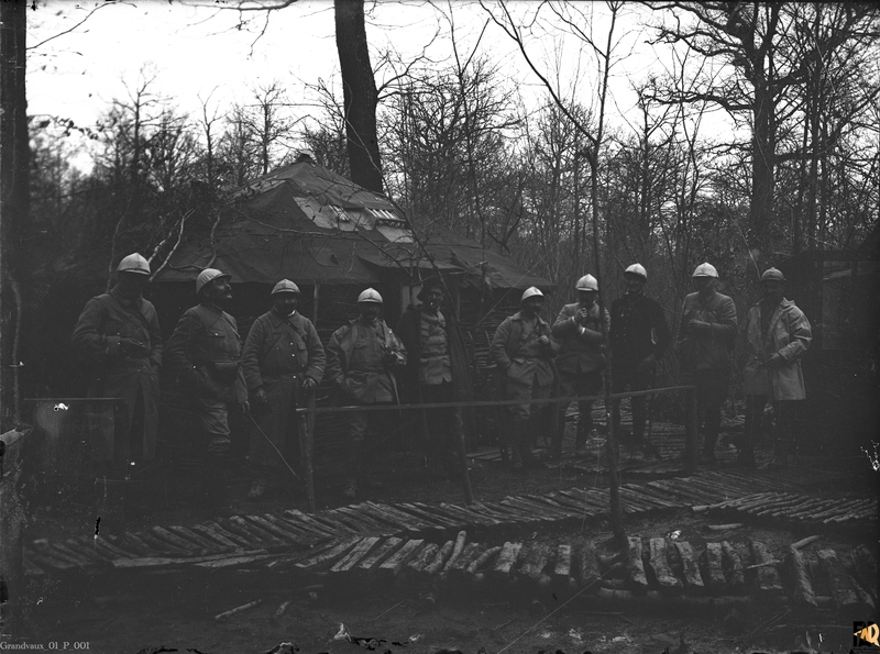 Groupe de soldats Français en forêt en Lorraine entre 1914 et 1916.