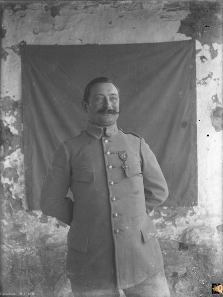 Portrait de Maurice Grandvaux pris sur le front en Lorraine dans le cadre de sa première décoration.