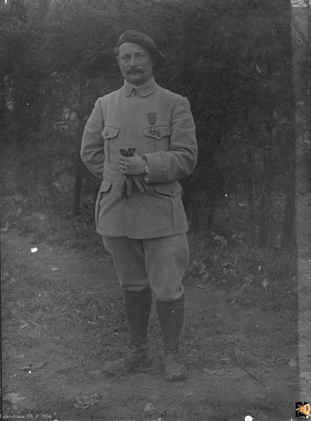 Portrait de Maurice Grandvaux en habit militaire avec décoration pris en extérieur.