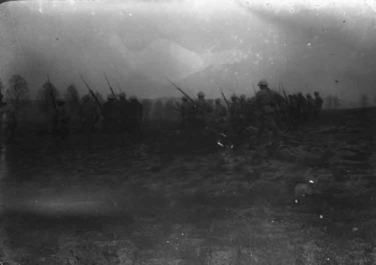 Militaires montant au front en Lorraine pendant la Première Guerre mondiale