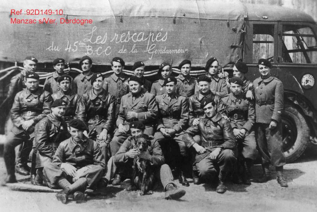 Groupe de rescapés du 45 ème BCC de la gendarmerie pendant la Seconde Guerre mondiale