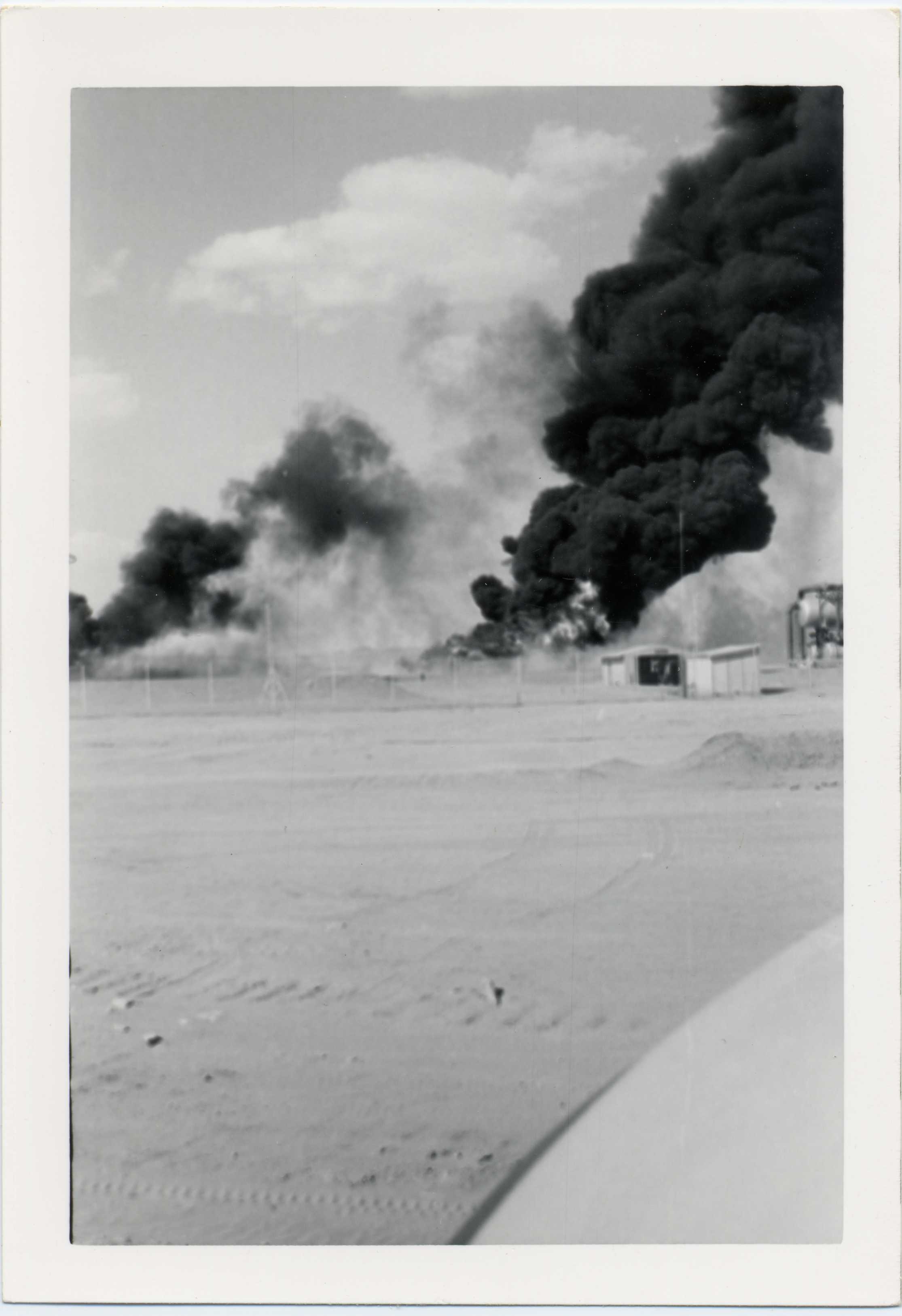 Incendie (d'un puits de pétrole ?) dans le désert.