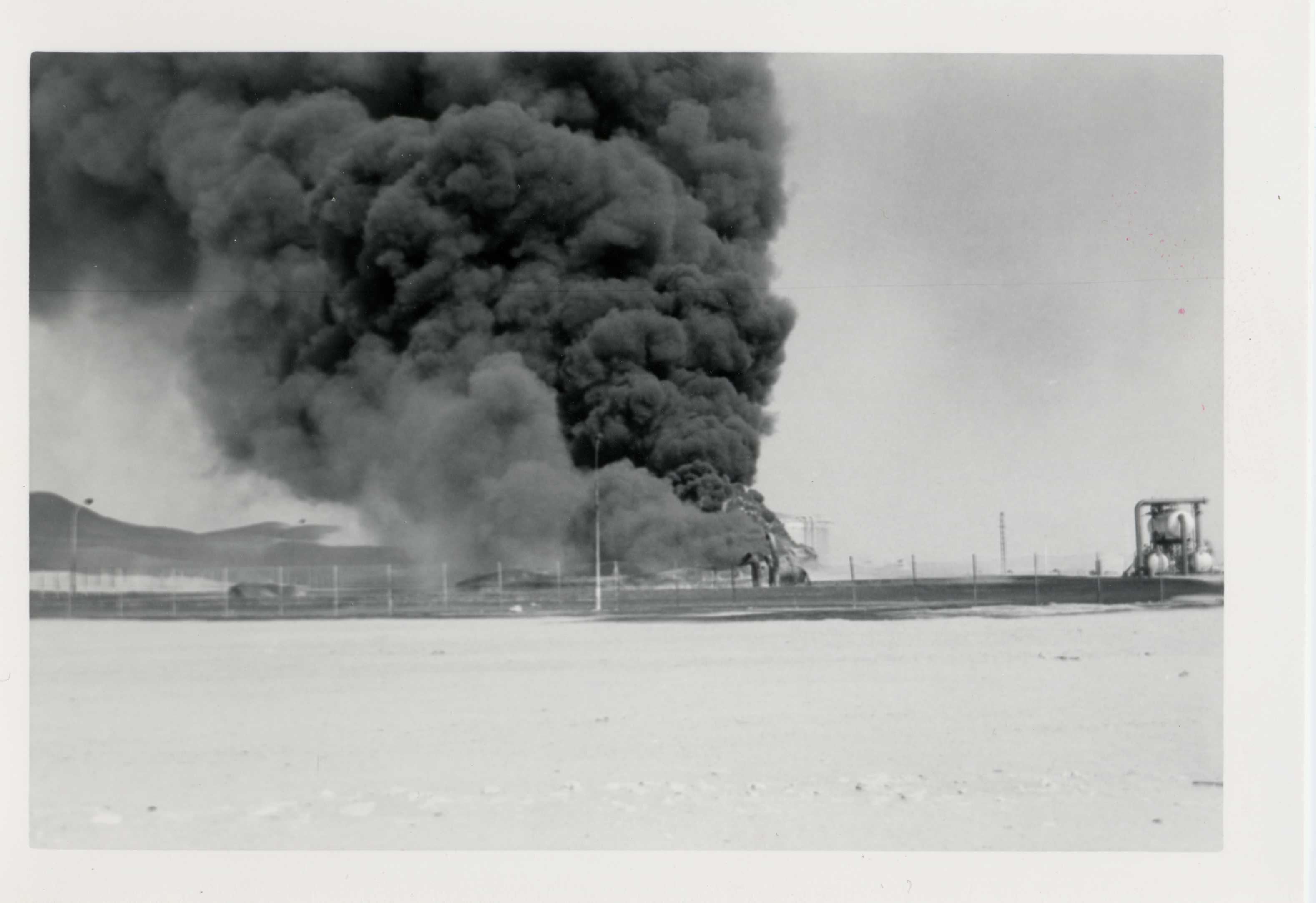 Incendie (d'un puits de pétrole ou gaz ?) dans le désert.