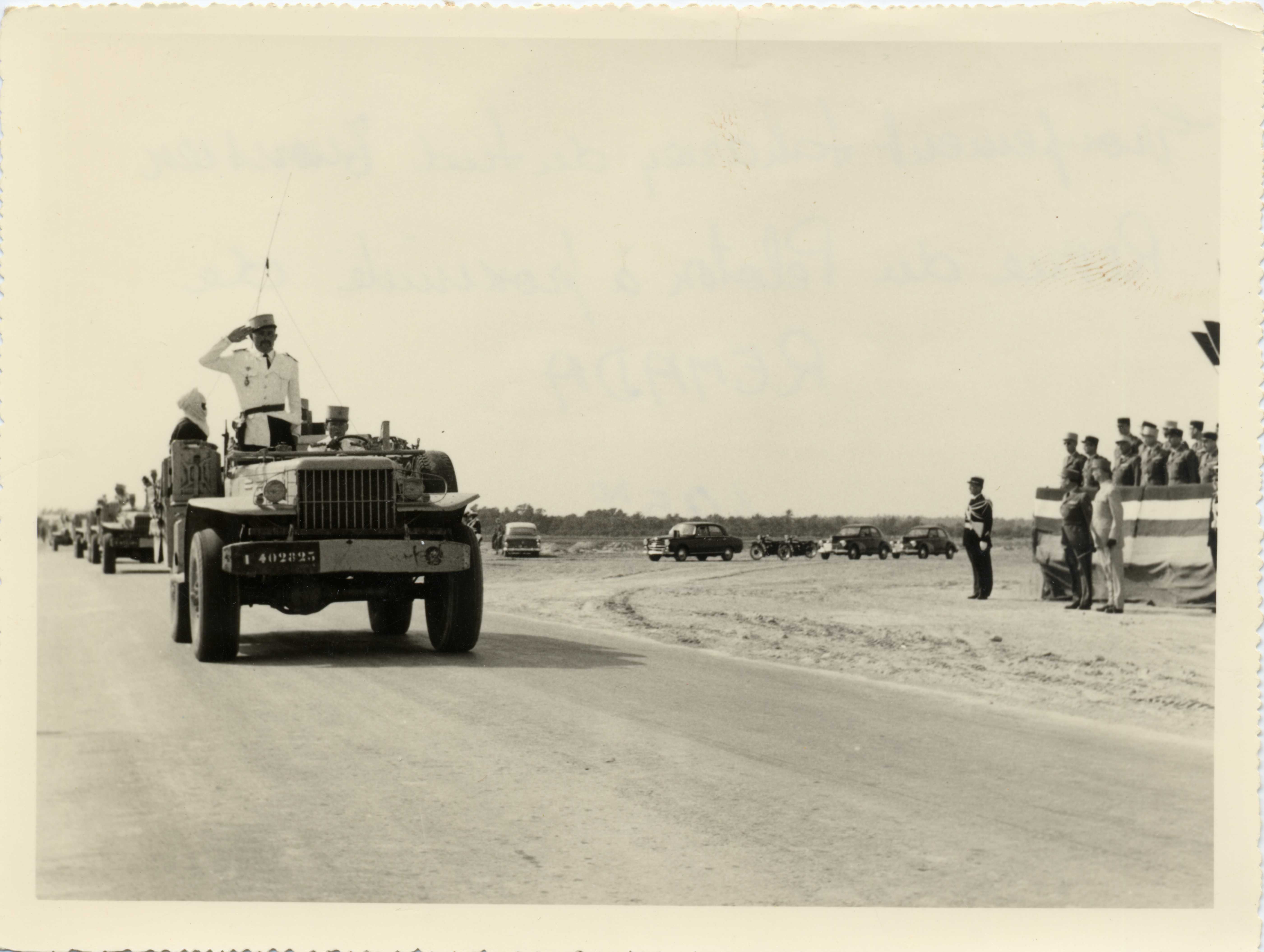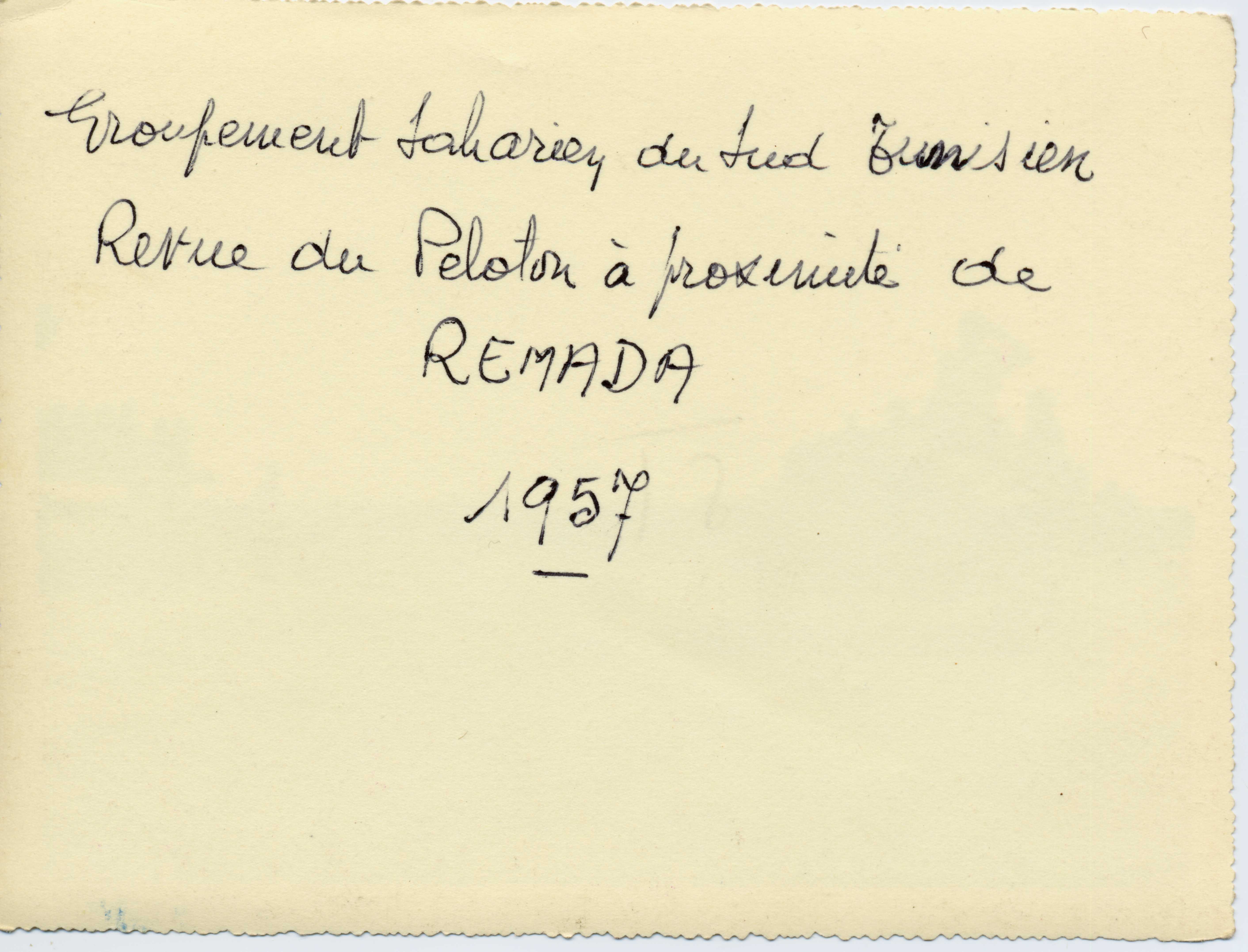 Un gradé sur un véhicule militaire passe en revue des troupes près de Remada.