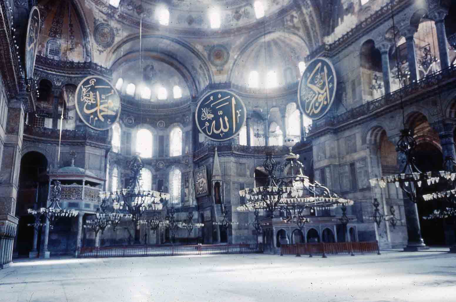 Intérieur de la Mosquée Bleue d'Istanbul dans les années 1950