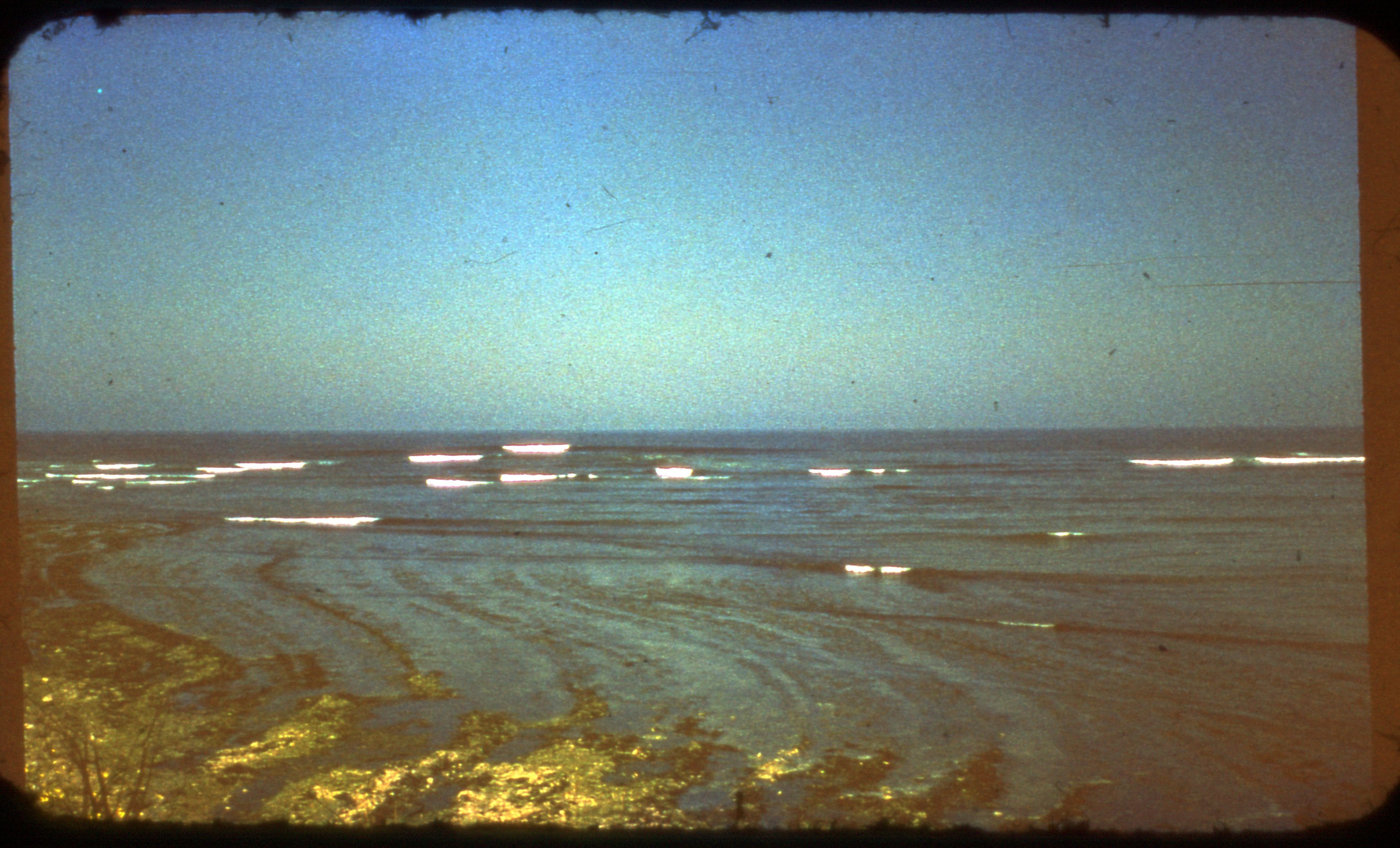 La mer vue depuis la côte sur l'île d'Oléron dans les années 1970.