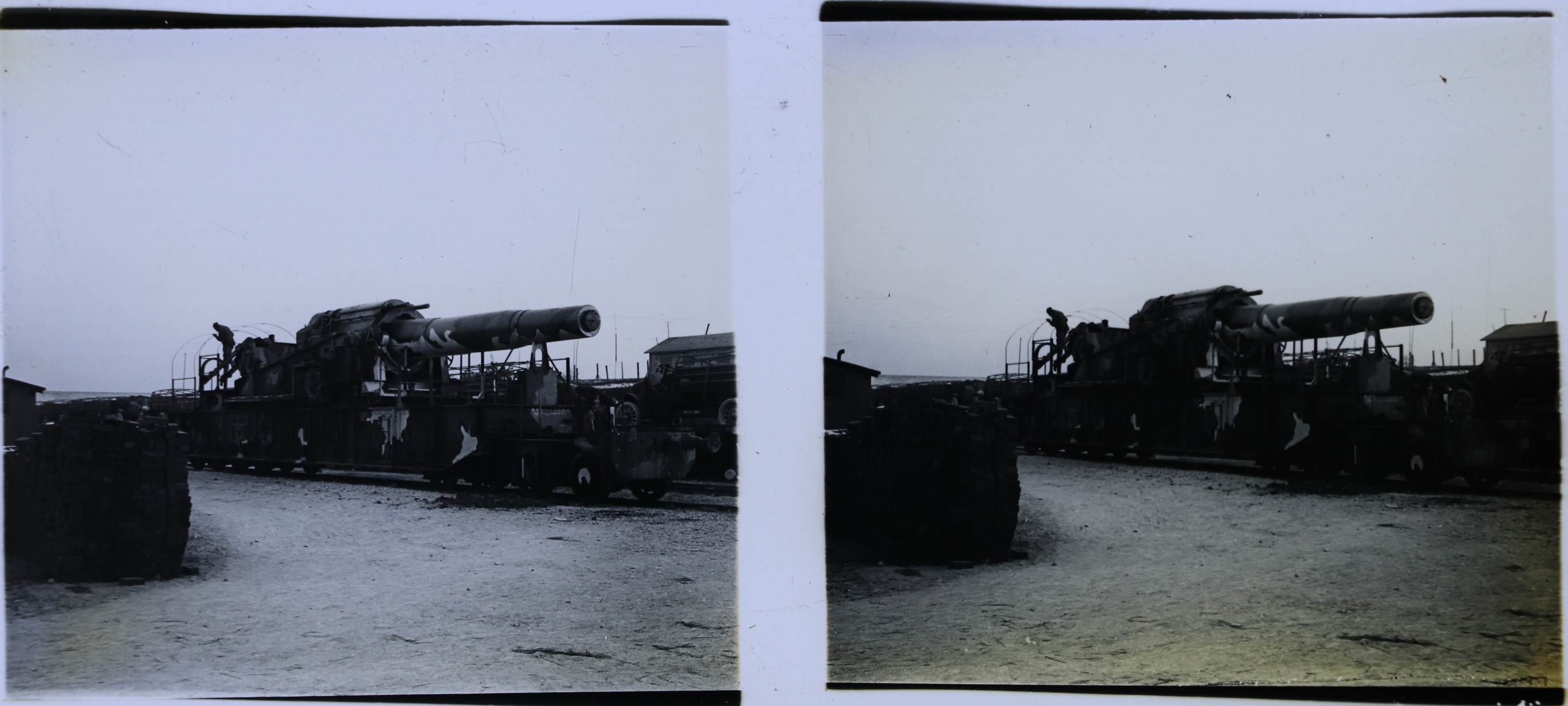 Un convoi d'armement militaire se prépare à la Réserve Générale d'Artillerie Lourde du camp de Mailly, dans l'Aube, dans les années 1920.