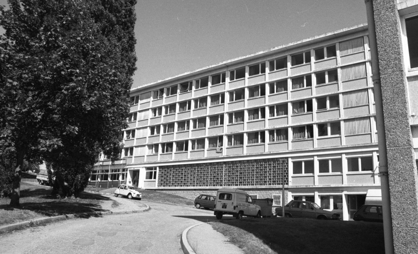Un des bâtiments de la résidence universitaire du campus de la Borie, à Limoges, subit quelques travaux en septembre 1990.