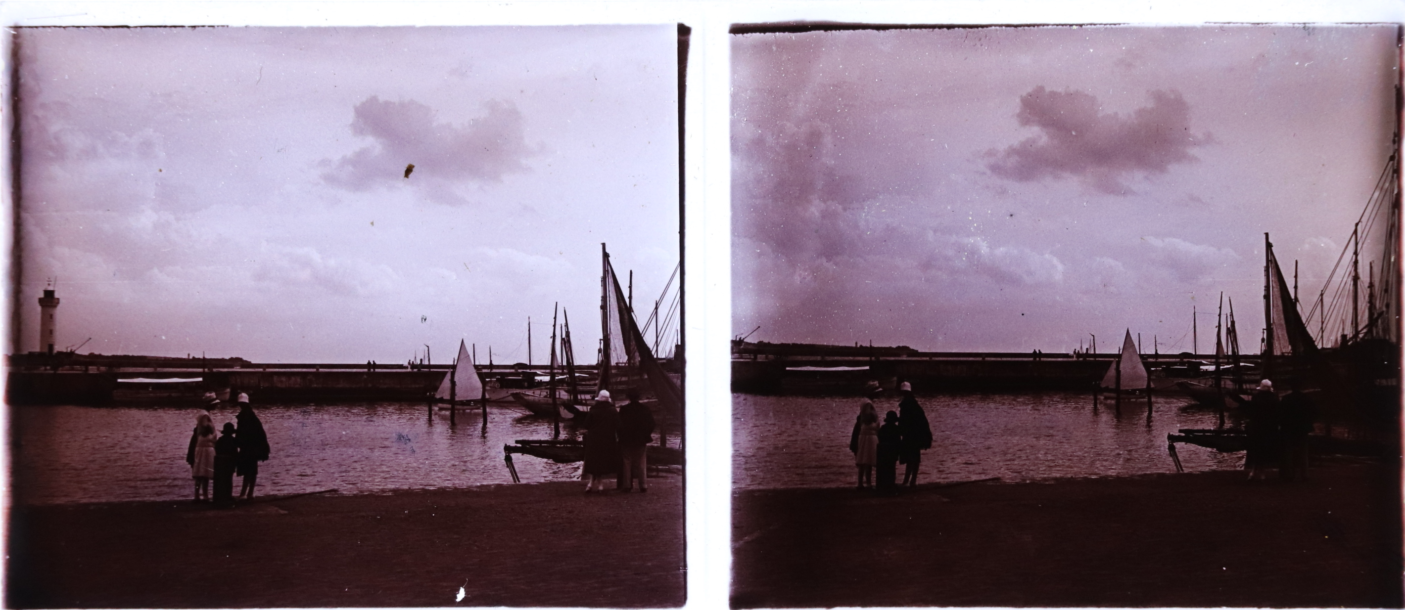 Dans le port de Royan, marqué à l'entrée par le feu du Môle, dans les années 1920.