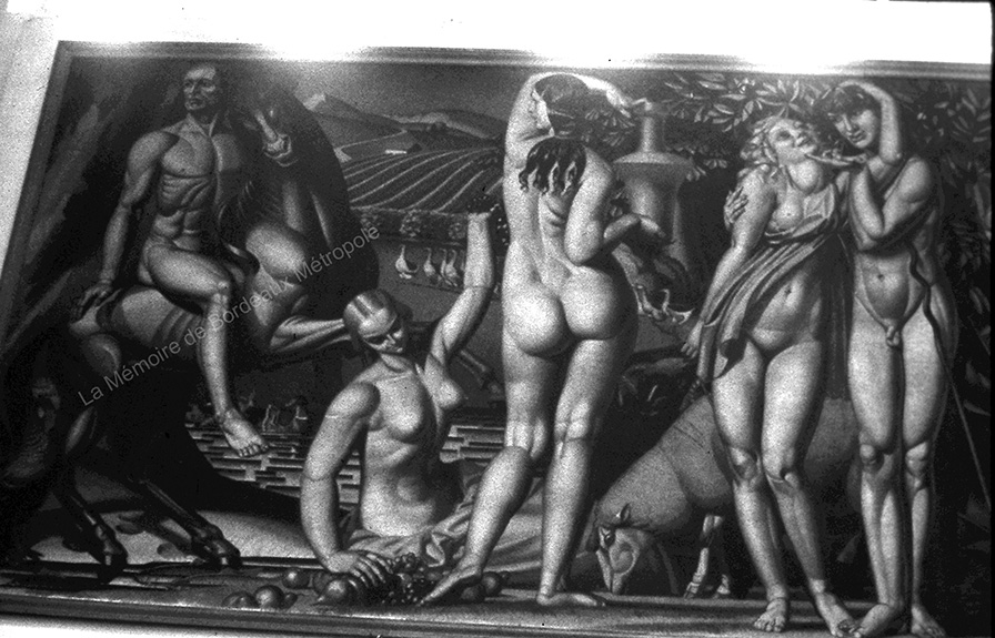 Jean Dupas (1882-1964), François-Maurice Roganeau (1883-1973), Jean Despujols (1886-1965) et Marius de Buzon (1879-1958), tous issus de l’enseignement académique de l’École municipale des beaux-arts et premiers Grands Prix de Rome pour trois d’entre eux, participent au décor du Pavillon de Bordeaux en 1925. Réalisés pour l’Exposition internationale des arts décoratifs et industriels modernes ces quatre panneaux témoignent du retour en force de la décoration murale monumentale.