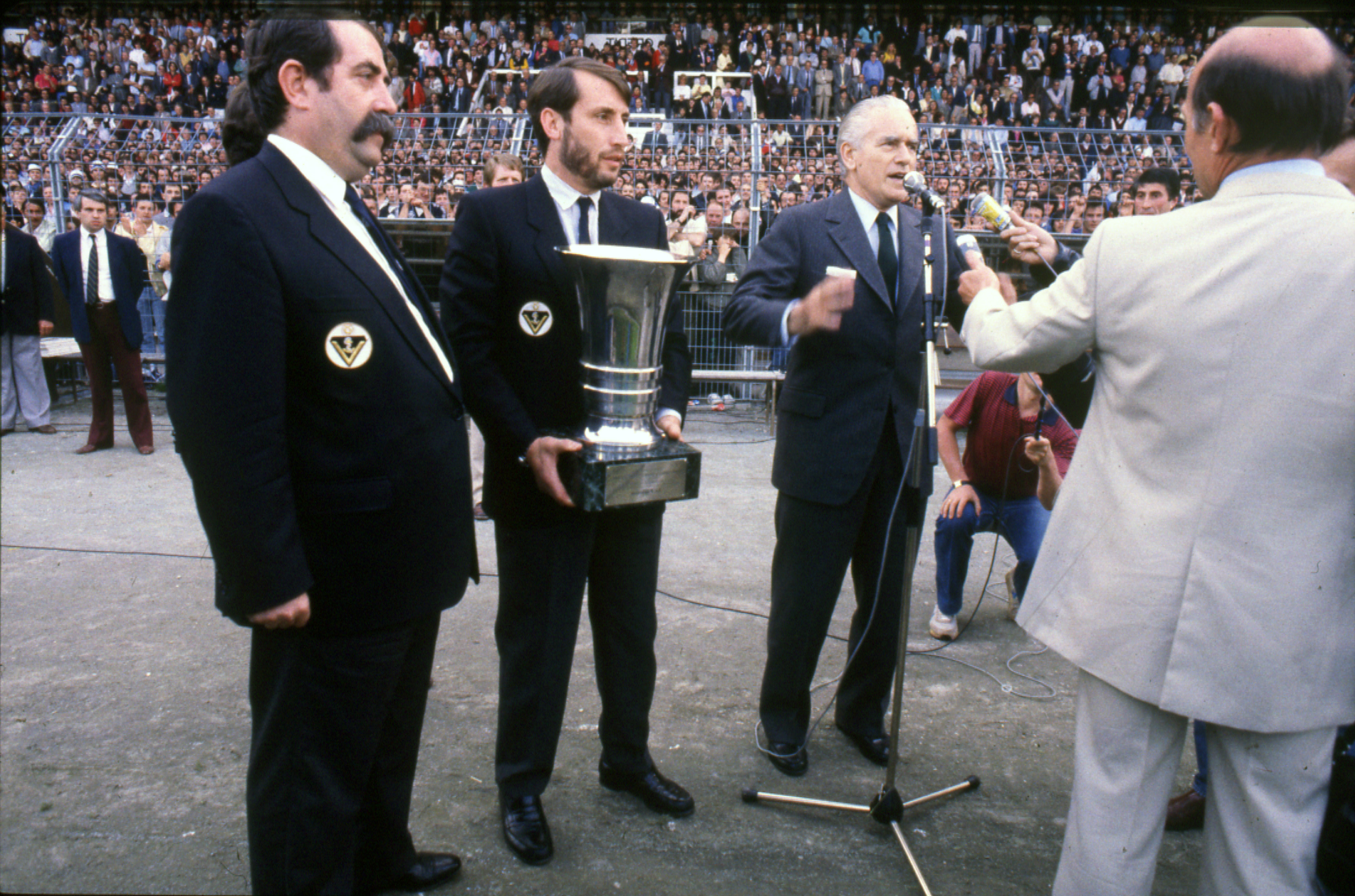 Au retour de l'équipe victorieuse, les supporters s'étaient rassemblés dans la cour de l'hôtel de ville pour leur faire une ovation, en présence du maire de Bordeaux, Jacques Chaban-Delmas et du président du club, Claude Bez.