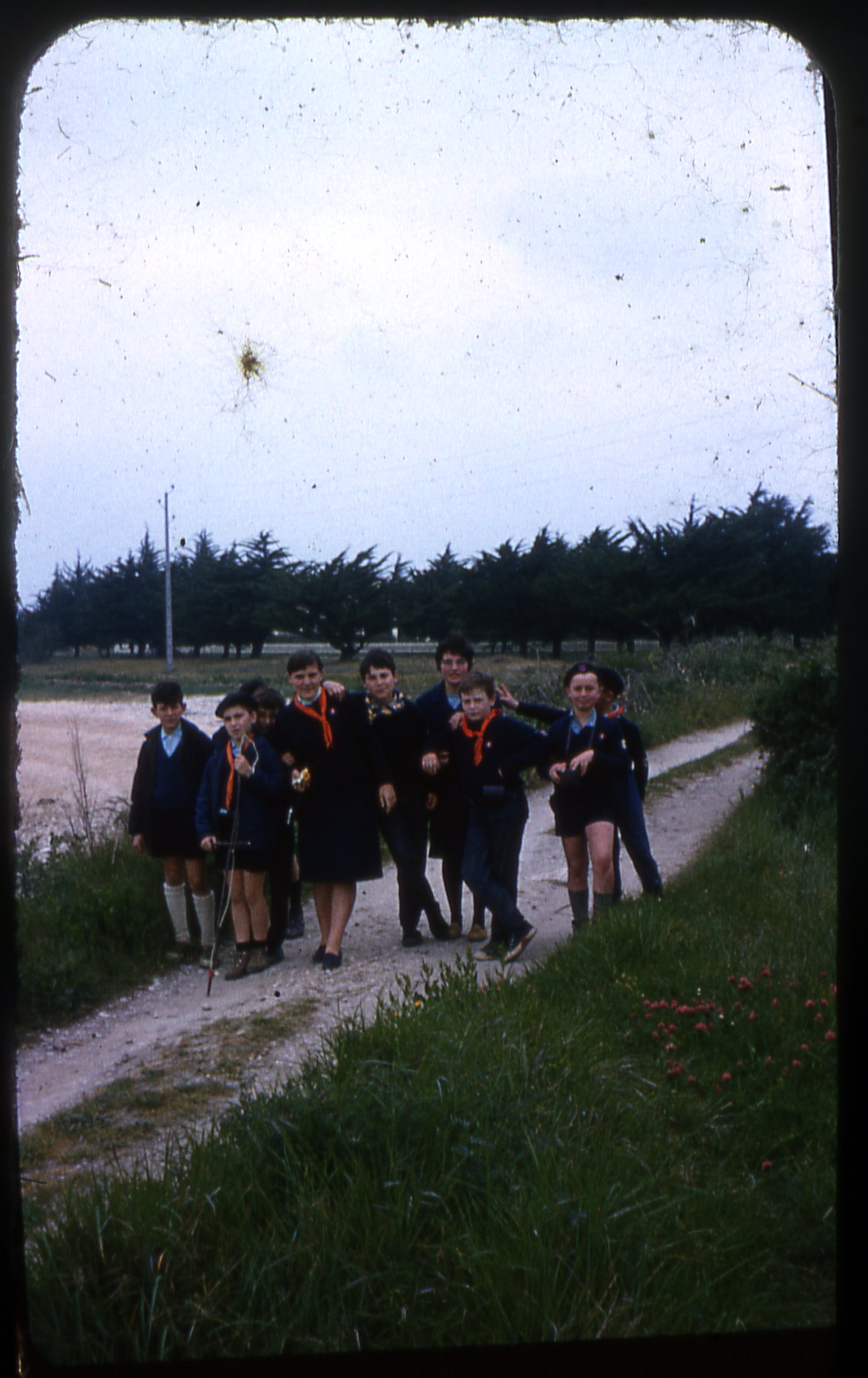 Les Louveteaux sur un chemin en bord de mer sur l'Île d'Oléron dans les années 1970