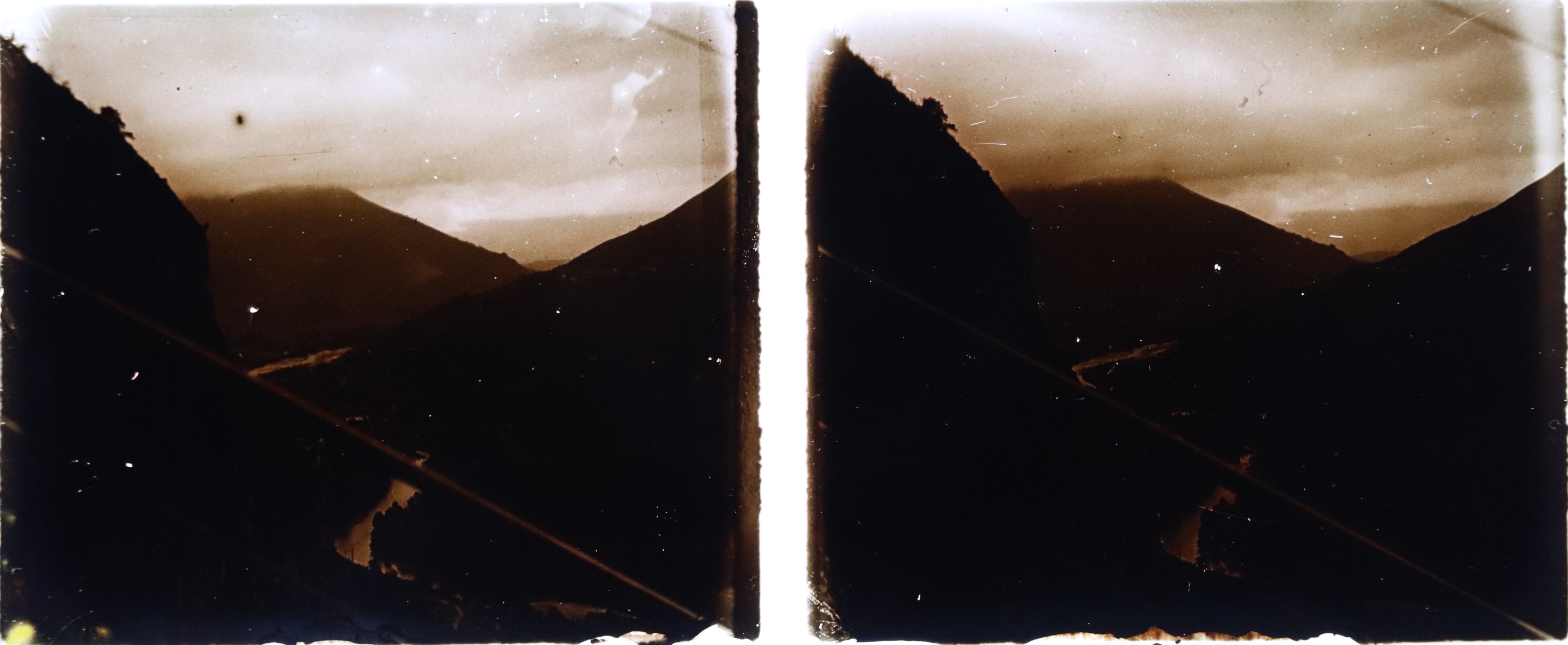 Une rivière coule au milieu des massifs des Pyrénées, dans les années 1920.