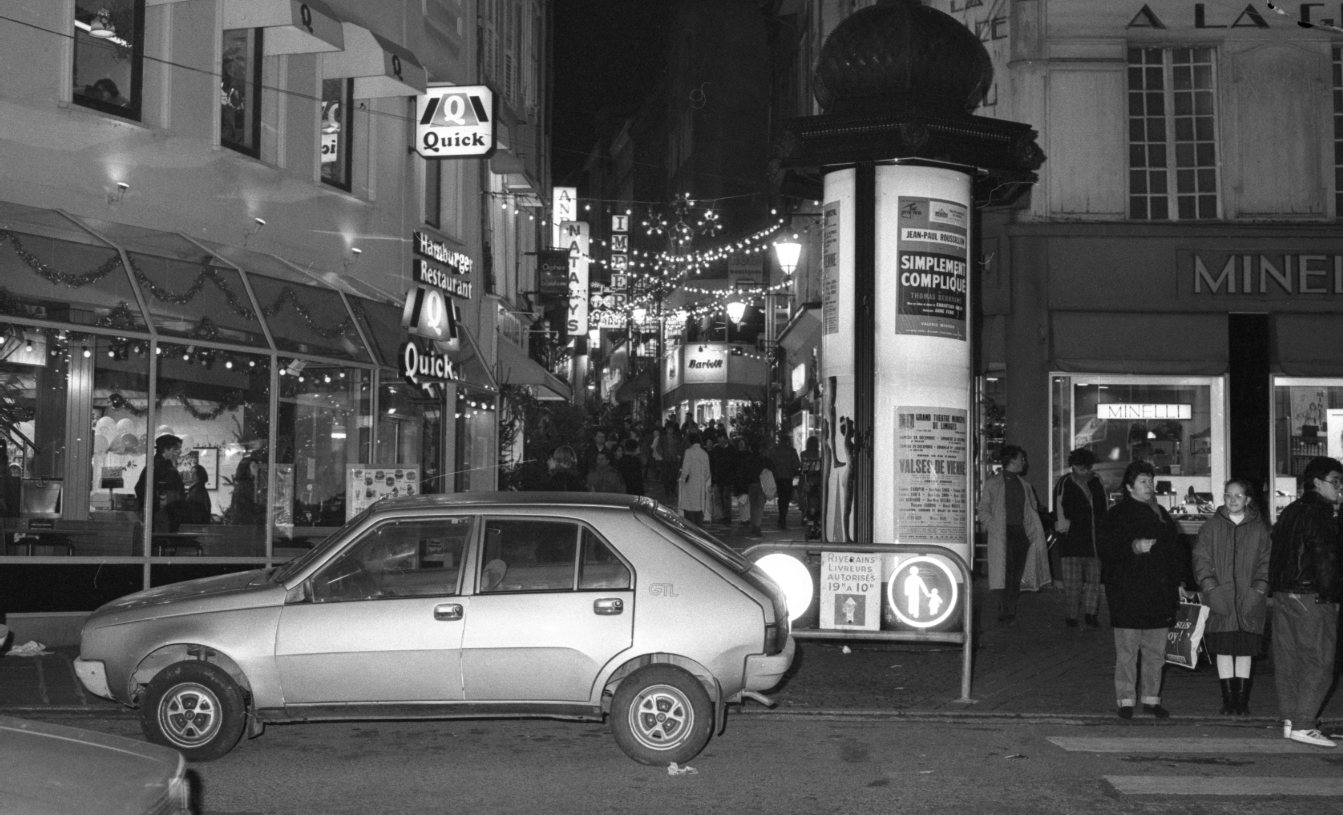 A Limoges, la rue du Clocher s'est parée de décorations de Noël pour célébrer les fêtes de fin d'année,en 1988.