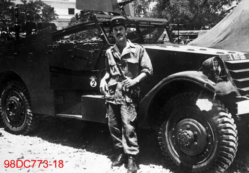Militaire devant un véhicule Panhard AMD 178.