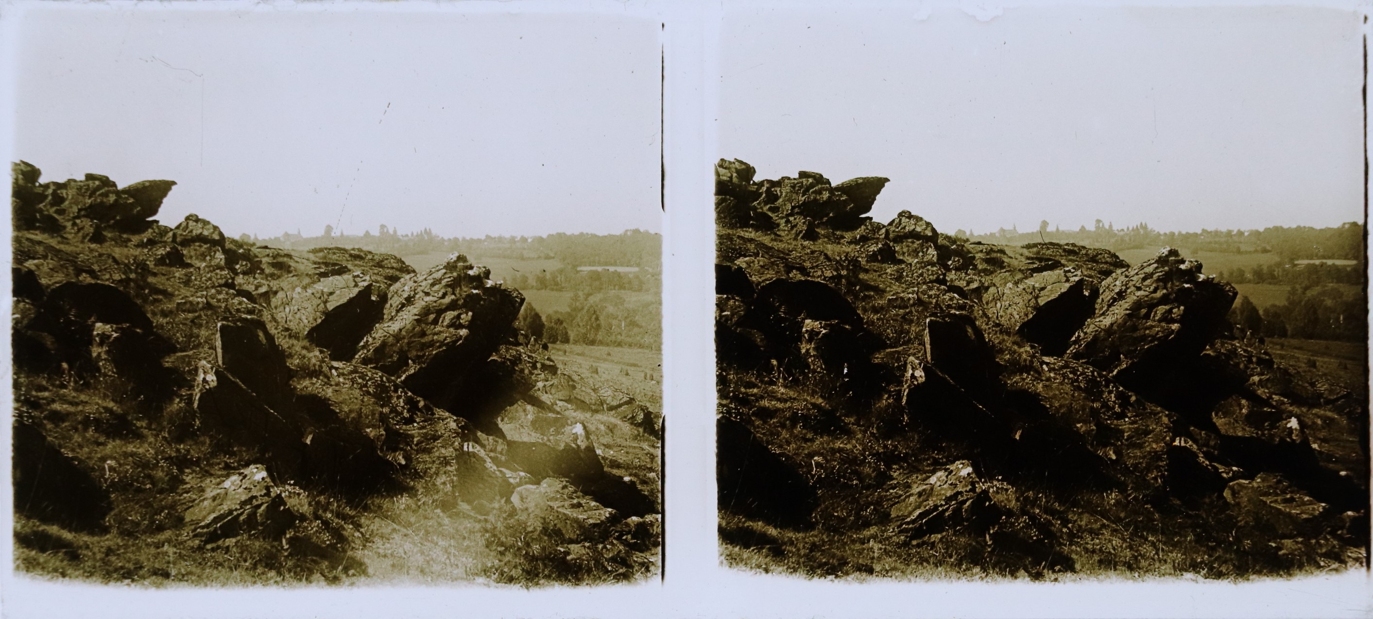 Un paysage naturel composé de pics rocheux, dans les années 1920.