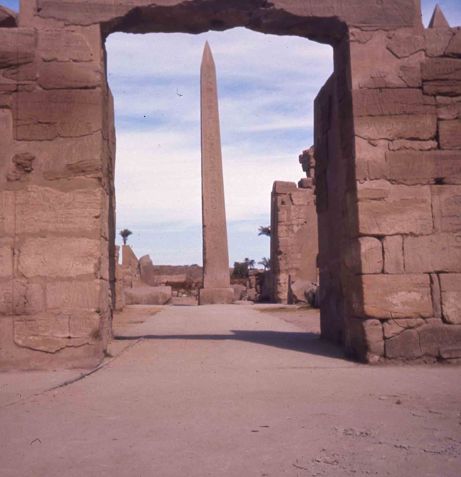 Vue sur l'obélisque restant du temple de Louxor. Commandité par Ramsès II, le deuxième obélisque a été offert à la France et se trouve aujourd'hui Place de la Concorde à Paris.
