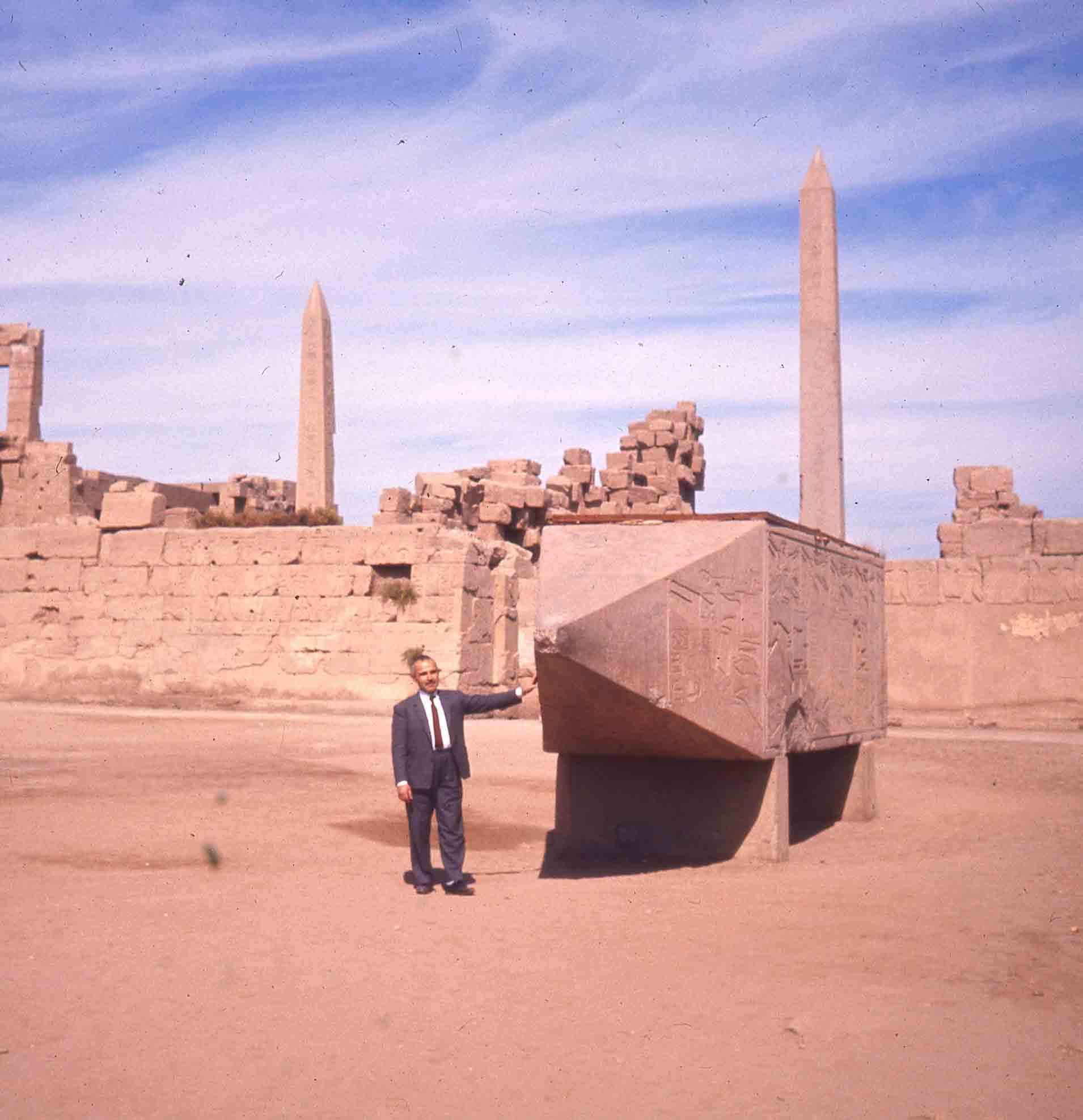 Photo d'un obélisque du temple de Louxor, posé à terre.