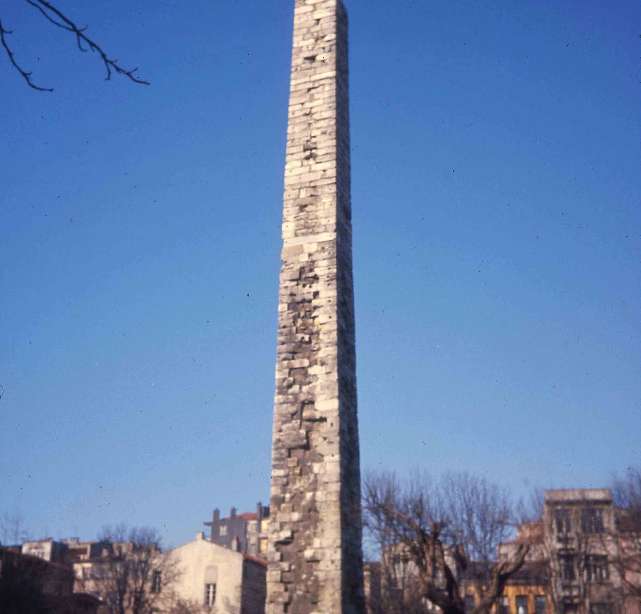 Photo du second obélisque de la Mosquée Bleue d'Istanbul, l'obélisque muré.