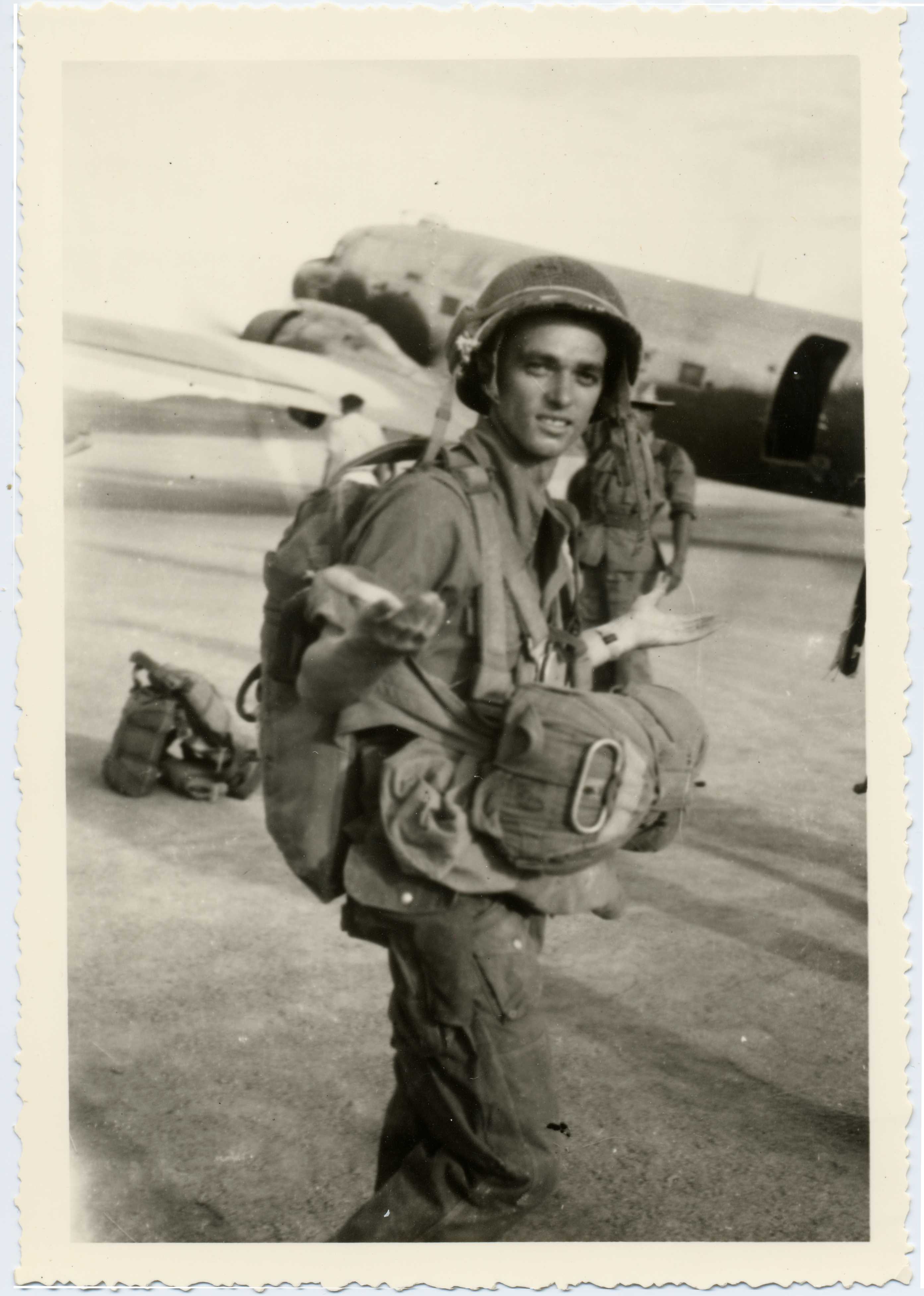 Parachutiste en tenue de saut pendant la Guerre d'Indochine