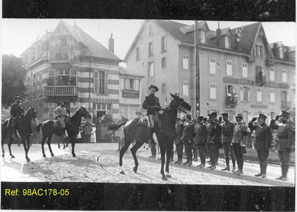 L’ensemble évoque une cérémonie officielle : inspection de troupes, défilé ou passage d’un haut gradé.