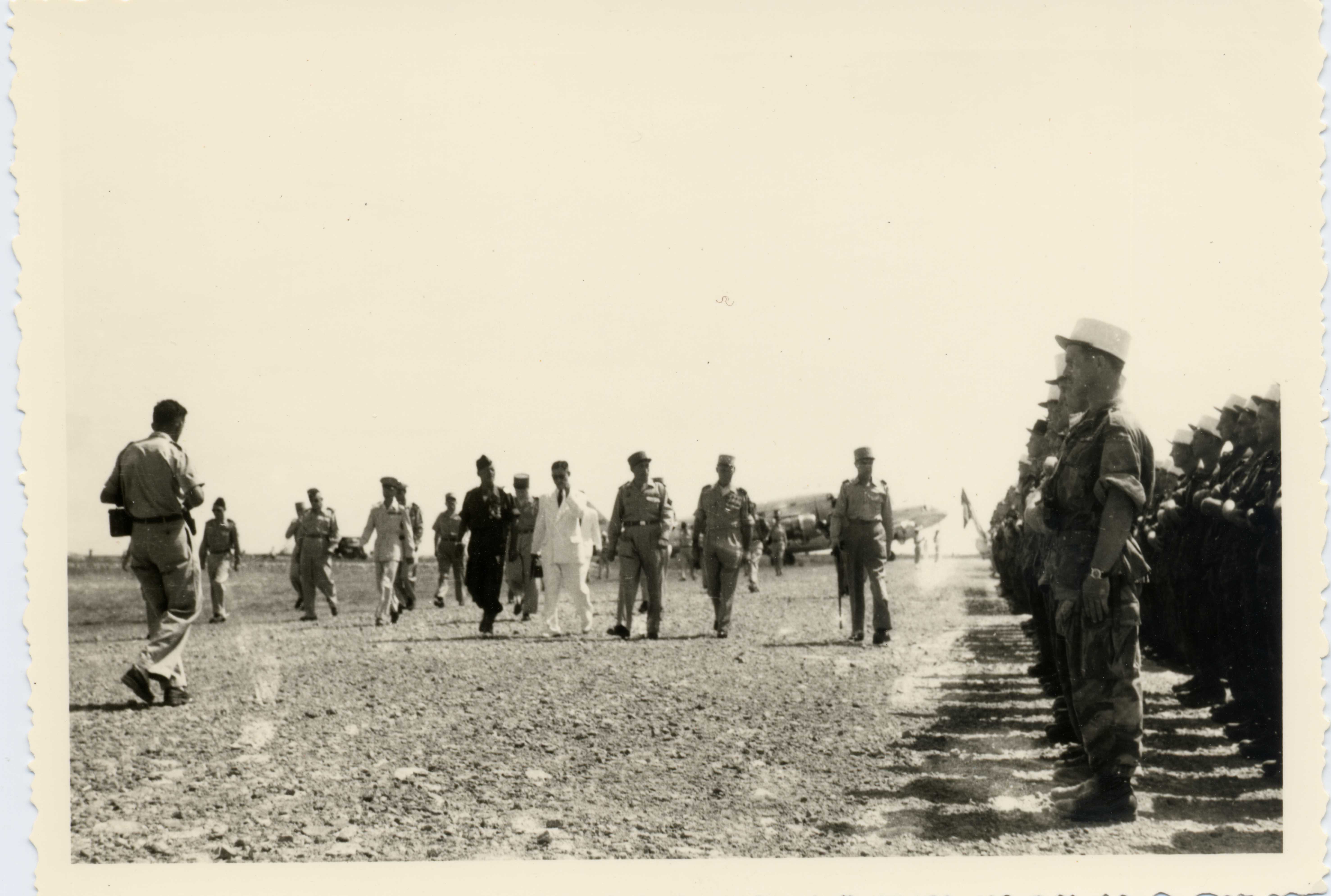 Passage en revue des troupes dans le désert dans les années 1950