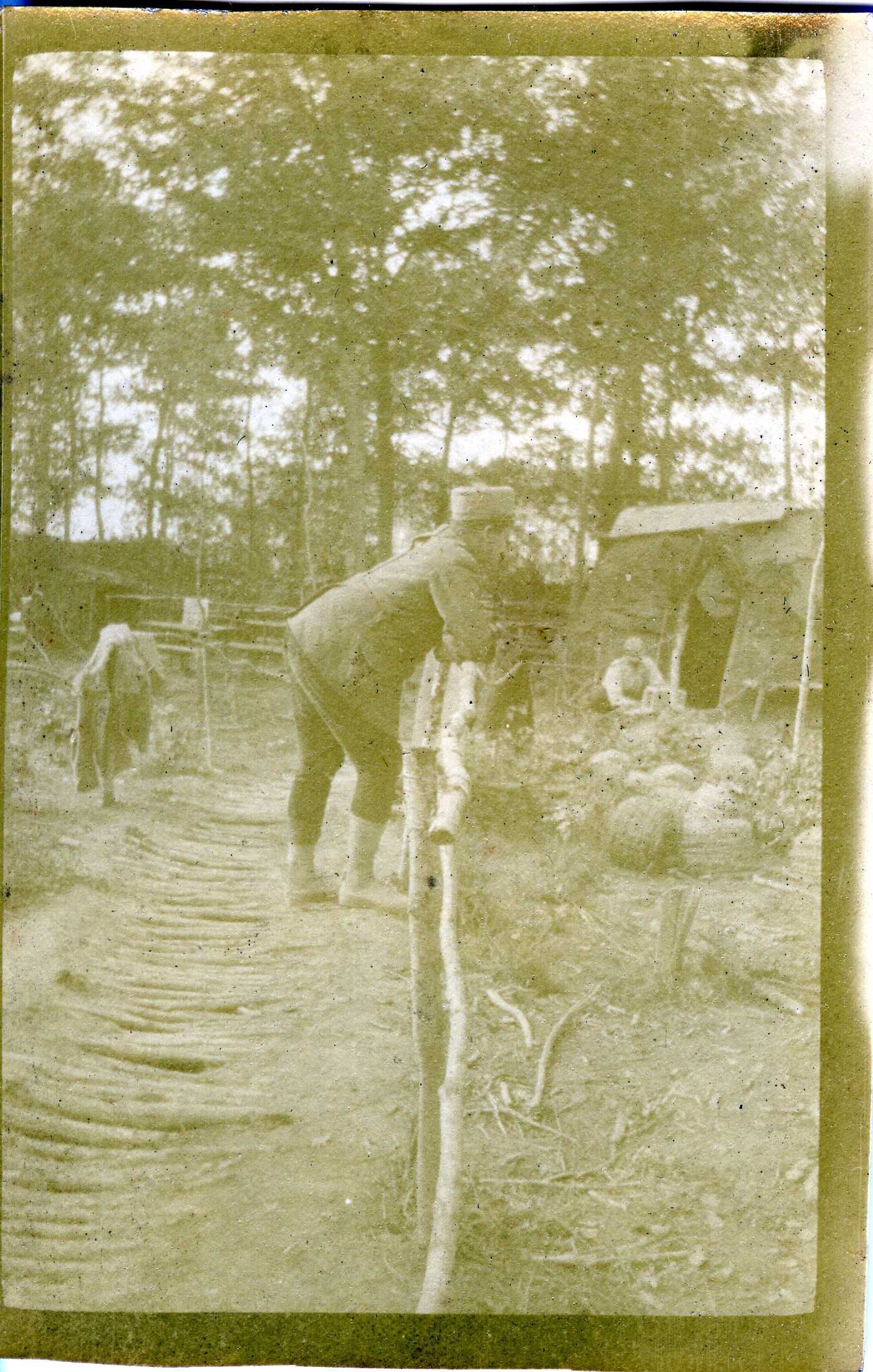 Photo du capitaine Quintard. Au fond, se trouve la gabionnade (branchages tressés remplis de terre) qui protège du bois.