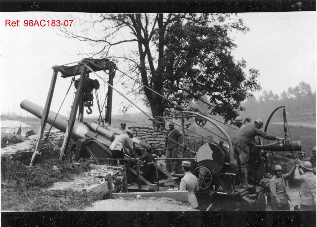 Pièce d’artillerie lourde en position de tir pendant la Première Guerre mondiale