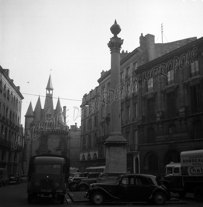 Façade d'immeubles sur la place du Palais, avec la colonne obélisque, qui n'existe plus aujourd'hui.