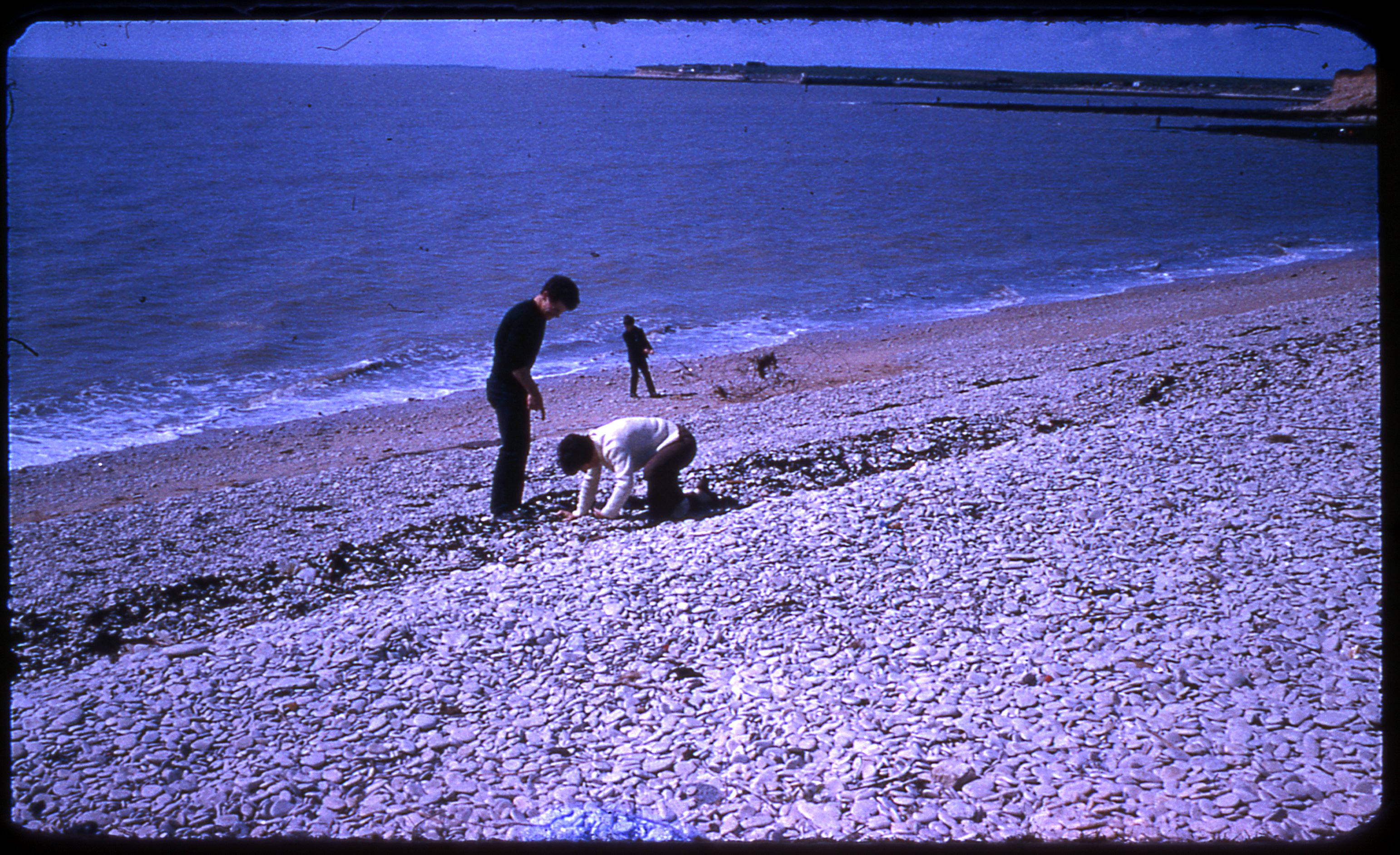 Plage de galets sur l'Île d'Oléron dans les années 1960-1970.