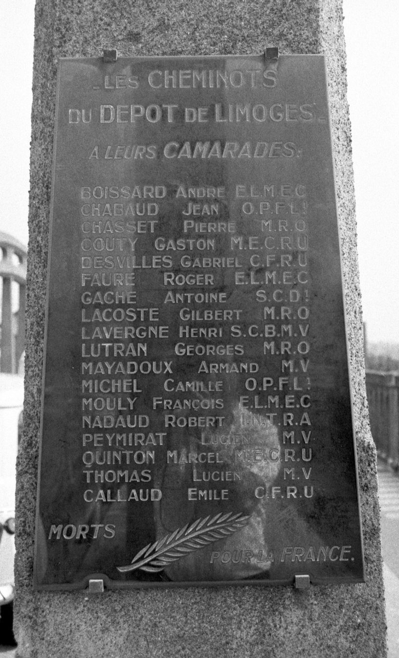 Plaque des cheminots à Limoges
