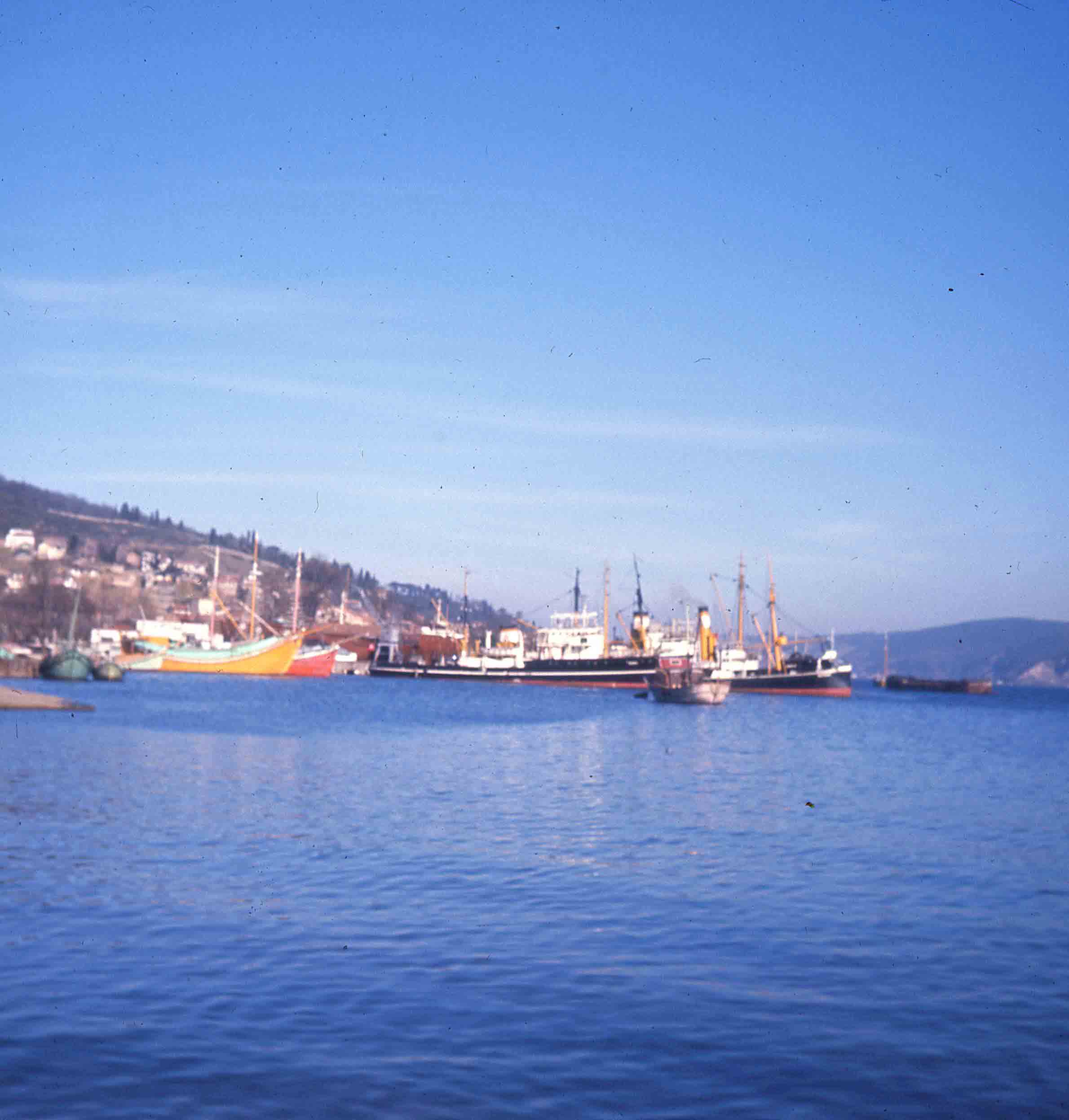 Prise de vue du port d'Istanbul, dans le détroit de Bosphore avec beaucoup de bateaux de commerce.