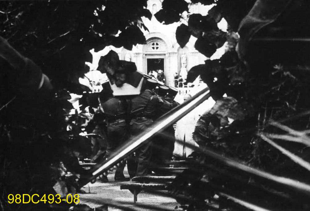 Portage d'un cercueil lors d'une cérémonie funéraire militaire entre 1956 et 1960