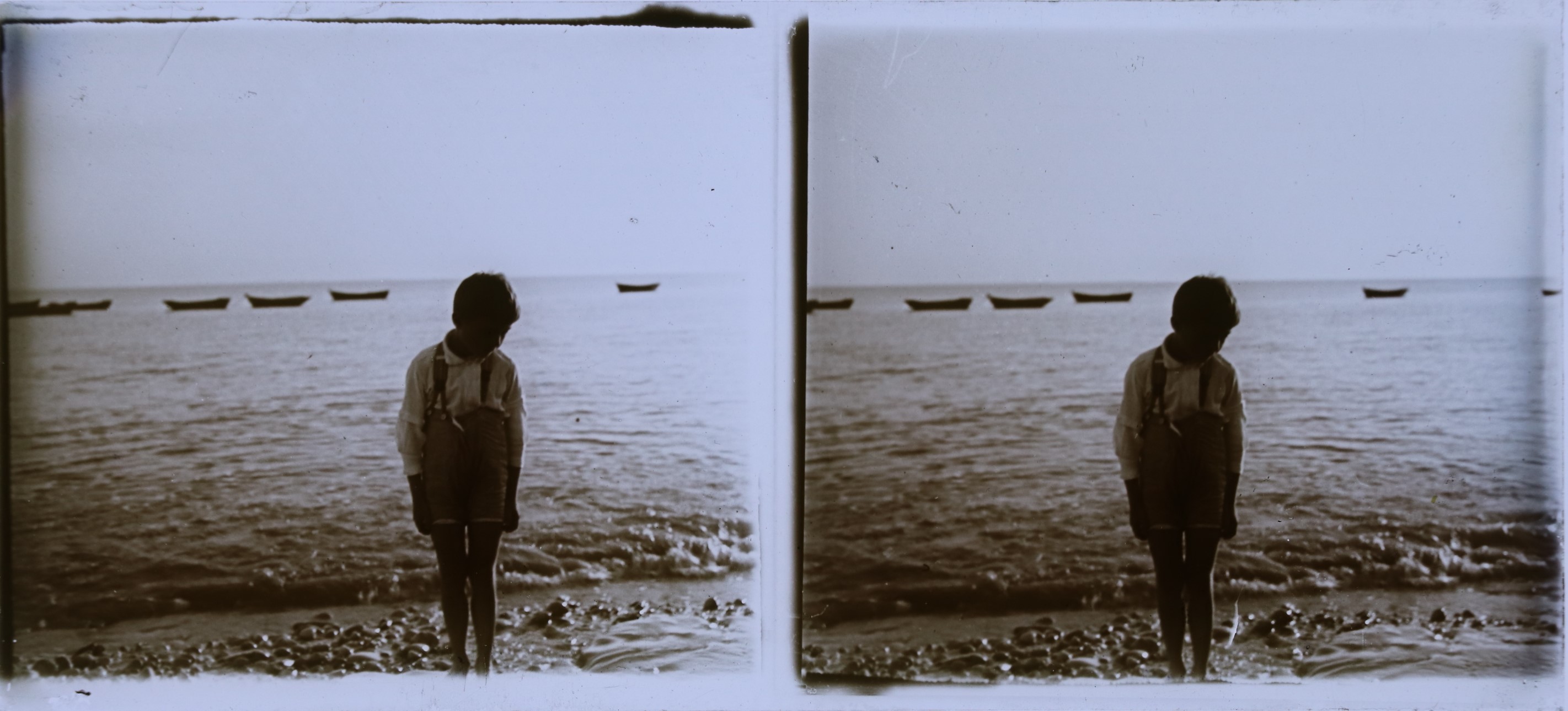 Le portrait d'un enfant sur une plage de l'Atlantique, dans les années 1920.