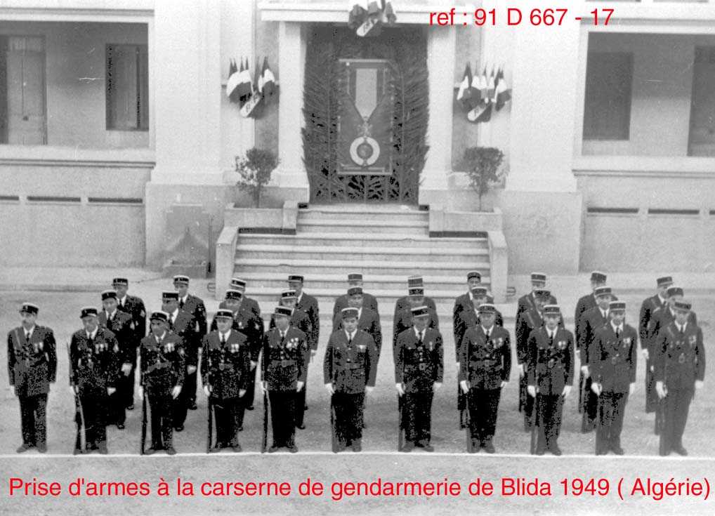 Prise d'armes à la caserne de la gendarmerie de Blida en Algérie en 1949