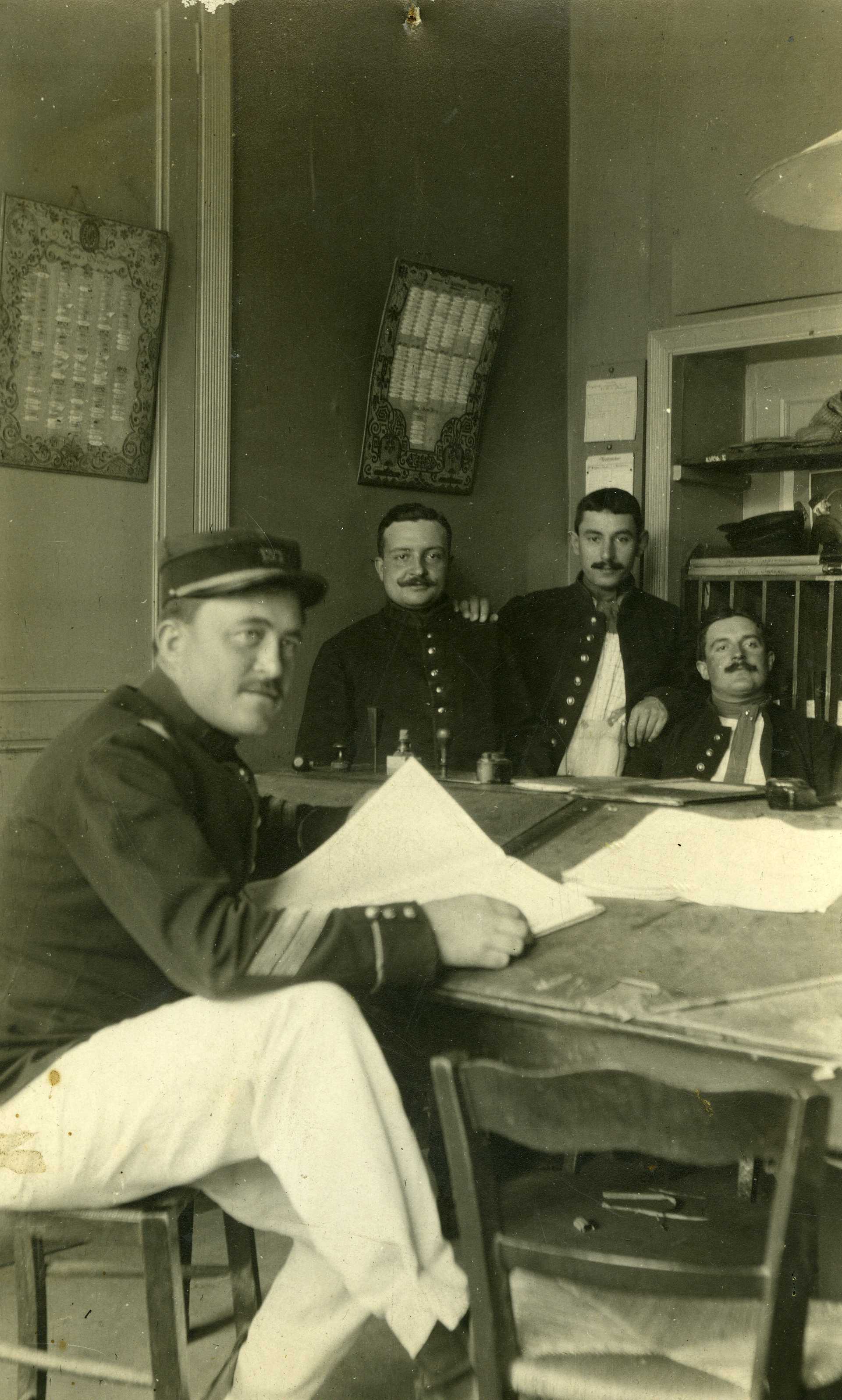Quatre gendarmes dans un bureau pendant la Première Guerre mondiale