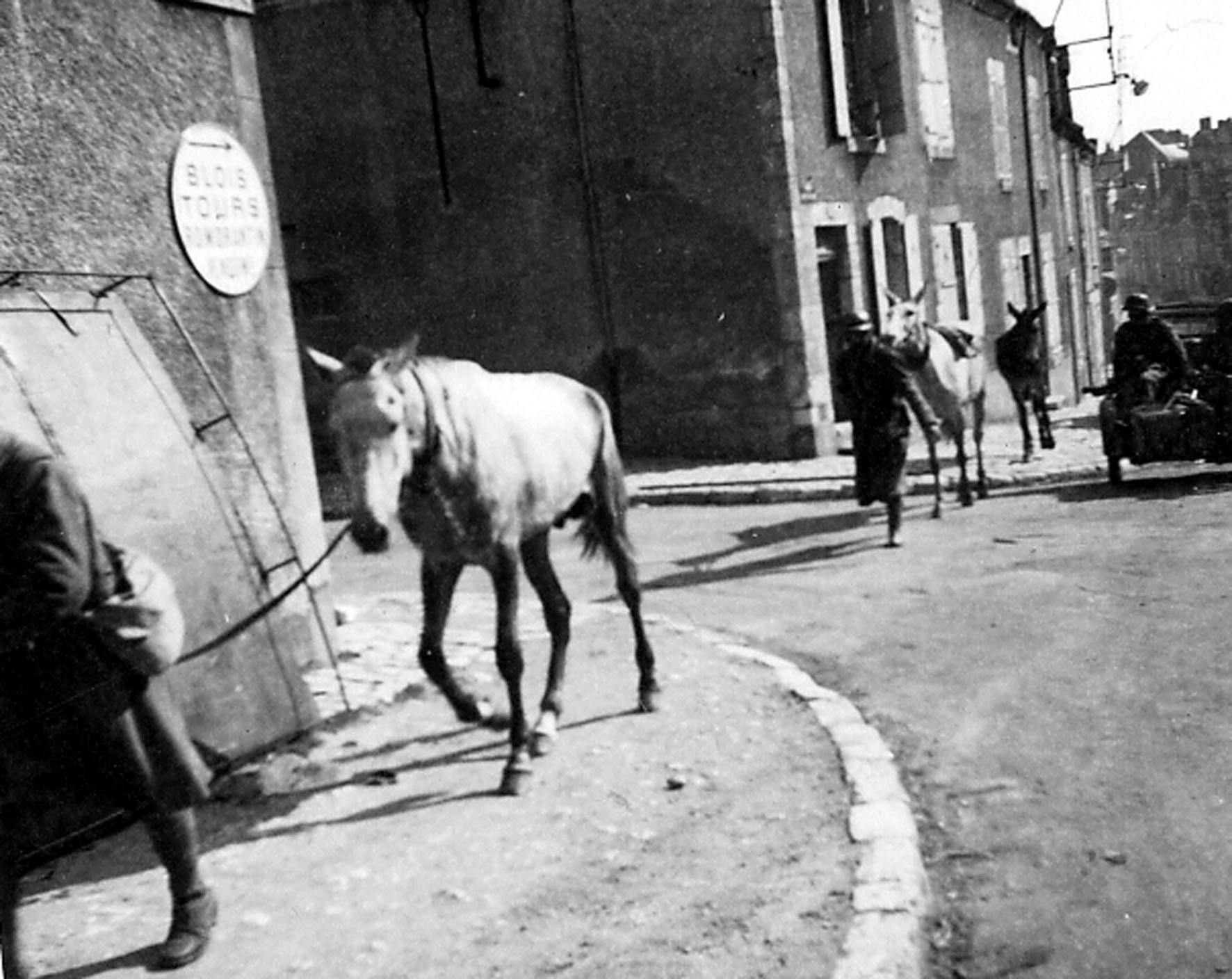 Prisonniers français tirant des chevaux pour rejoindre les camps de prisonniers en 1940 vers Tours