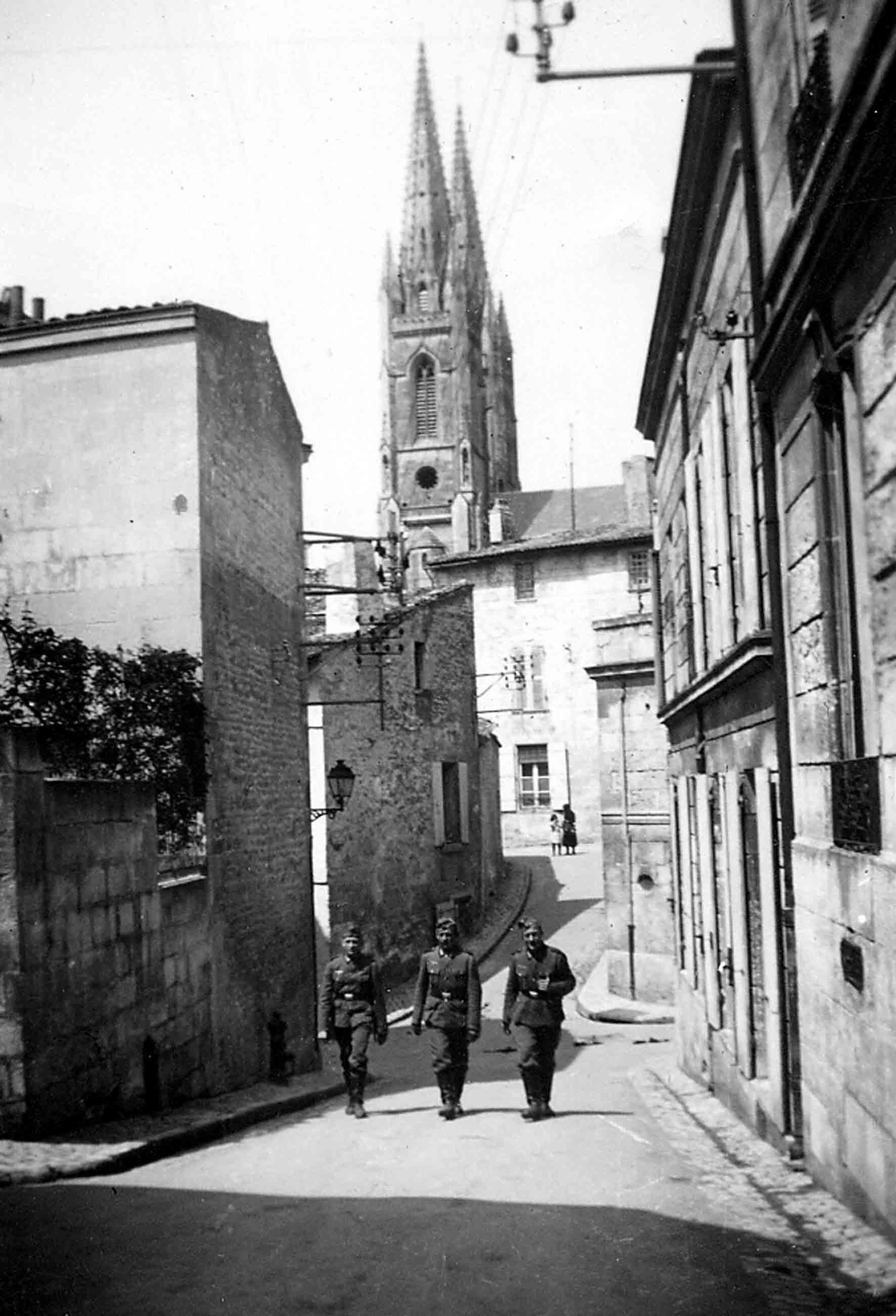 Soldats allemands se promenant dans une rue de Niort en 1940 ou 1941