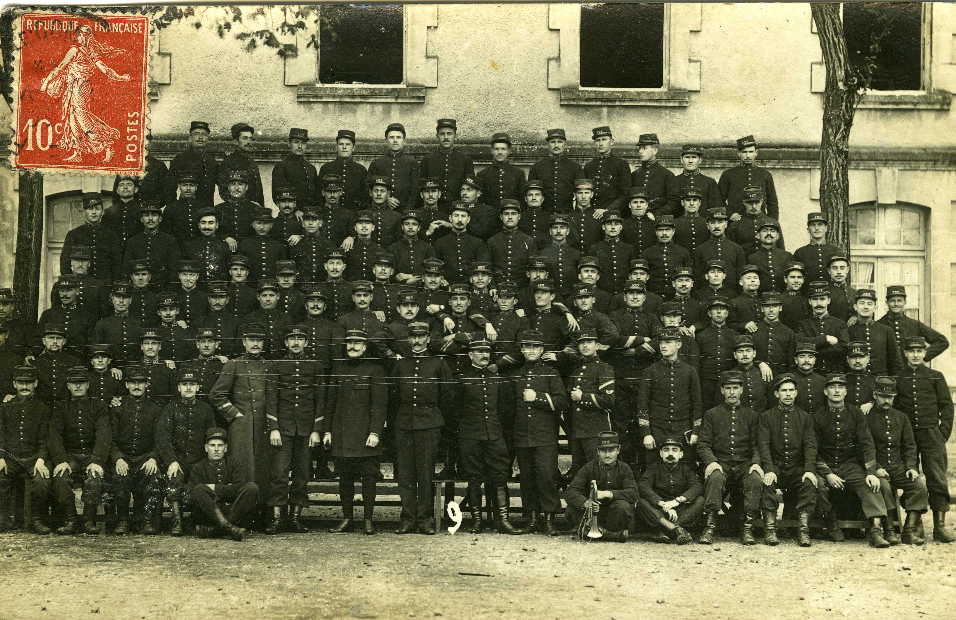 Régiment devant sa caserne pendant la Première Guerre mondiale