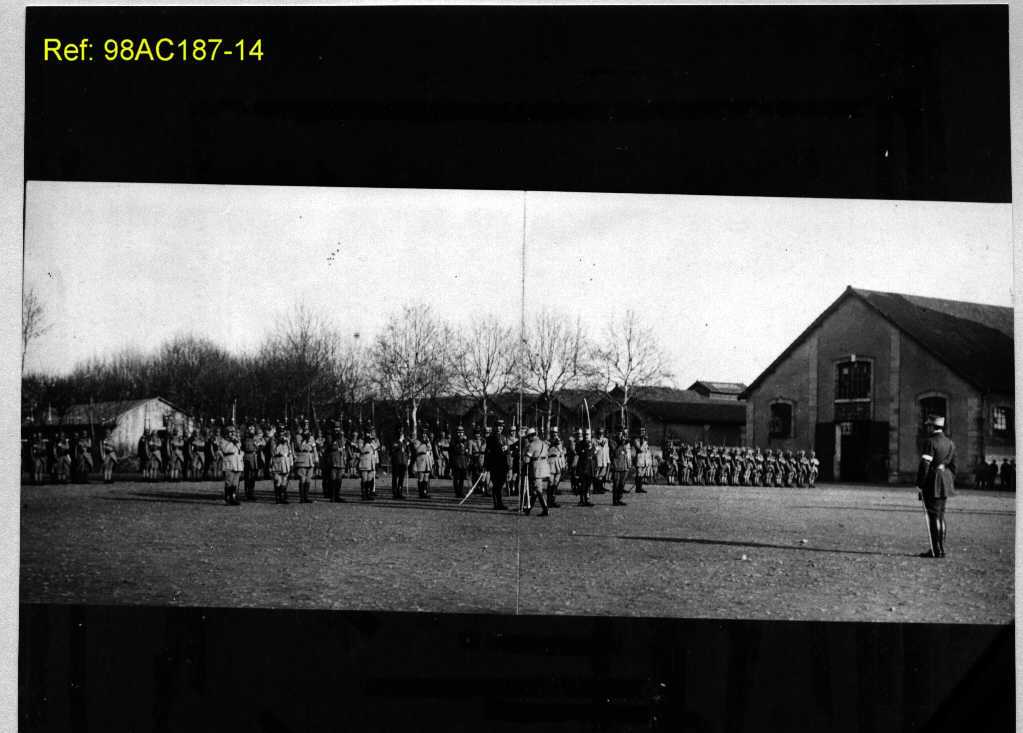 Revue de troupes dans une caserne française pendant la Première Guerre mondiale