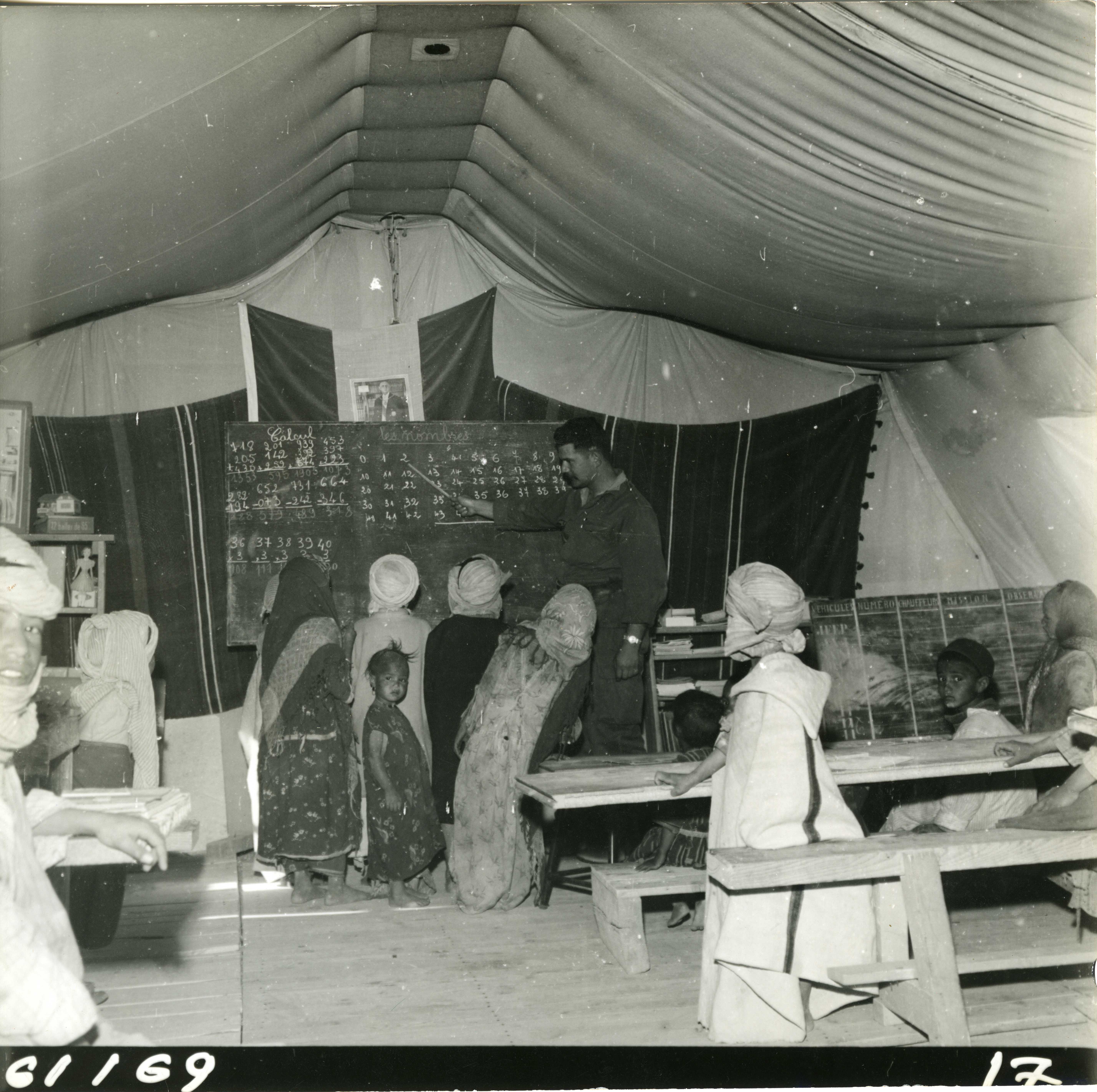 Un maître fait la classe à des enfants bédouins en Algérie ou Tunisie.