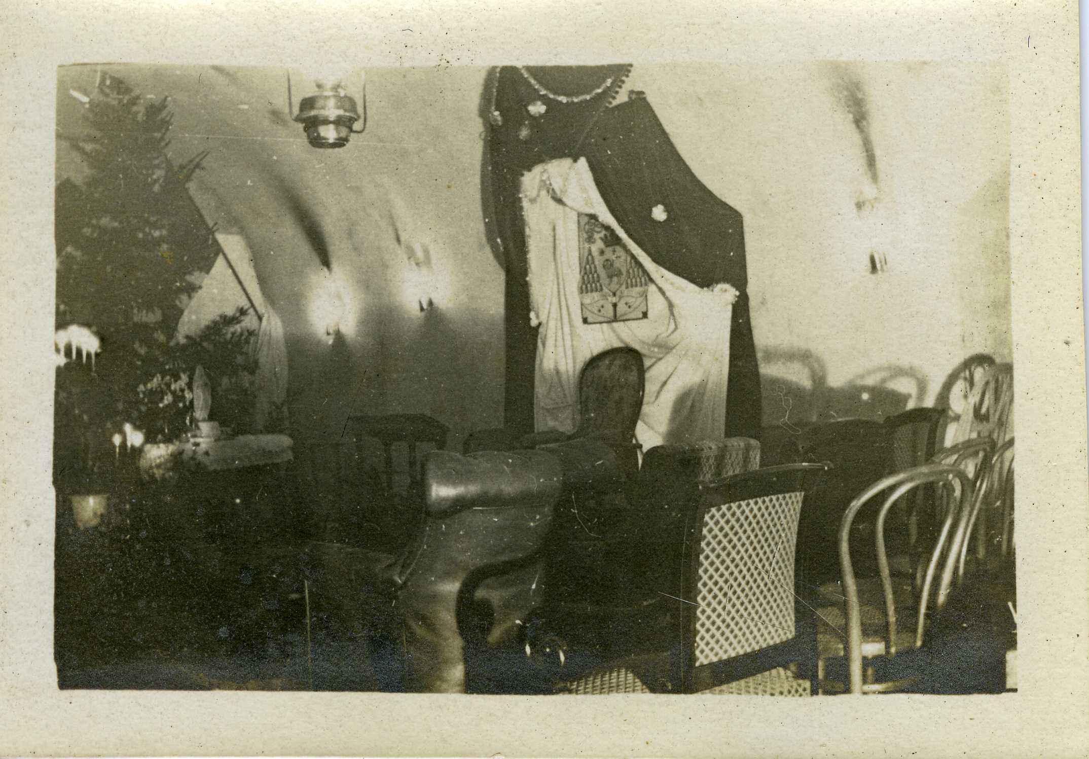 Salle de prière improvisée au moment de Noël pendant la Première Guerre mondiale