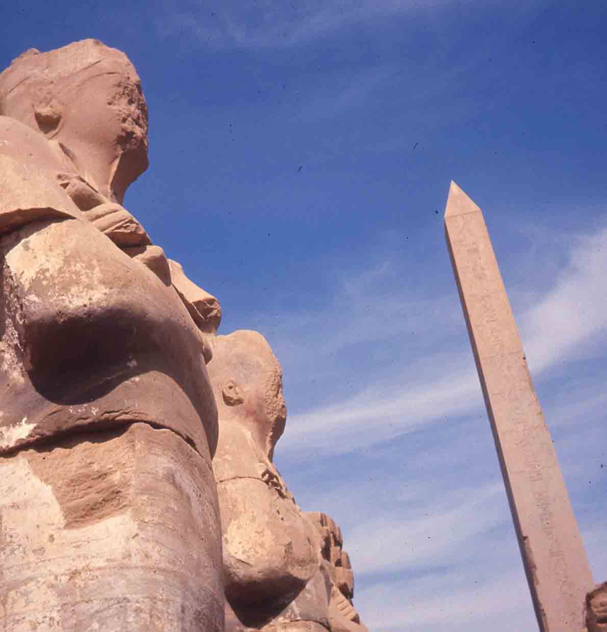 Prise de vue de sculptures dans Karnak, l'ensemble de temples de la ville de Louxor, en Égypte.